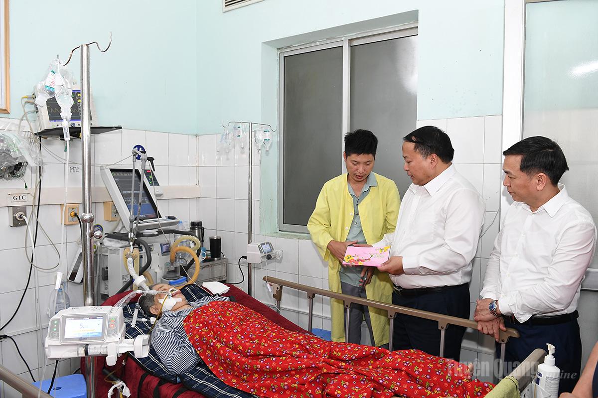 Chủ tịch UBND tỉnh Phan Huy Ngọc tặng quà bệnh nhân đang điều trị tại Khoa Hồi sức - Tích cực chống độc, Bệnh viện Đa khoa tỉnh.
