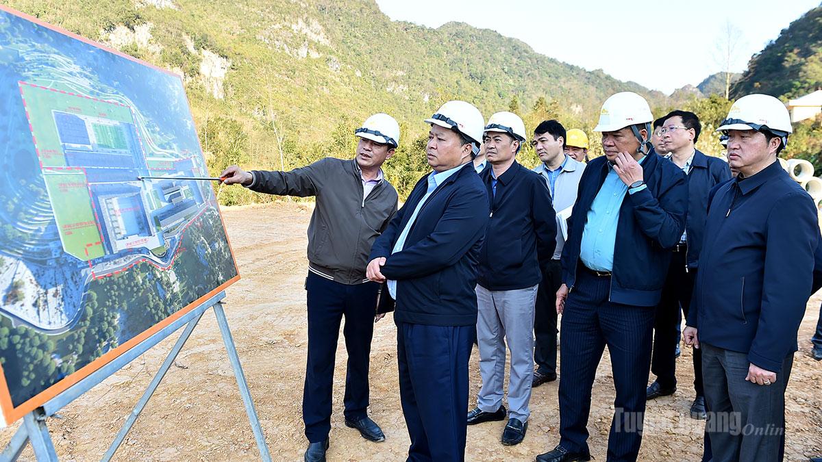 Đồng chí Chủ tịch UBND tỉnh Phan Huy Ngọc kiểm tra tiến độ xây dựng trường Phổ thông nội trú liên cấp Tiểu học và Trung học cơ sở Minh Tân.