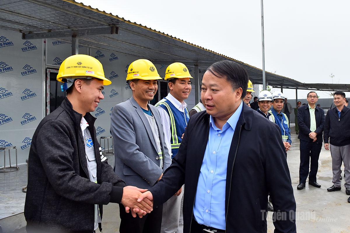 Chủ tịch UBND tỉnh Phan Huy Ngọc động viên công nhân đang thi công cao tốc Tuyên Quang - Hà Giang đoạn qua phường Mỹ Lâm và xã Nhữ Khê.