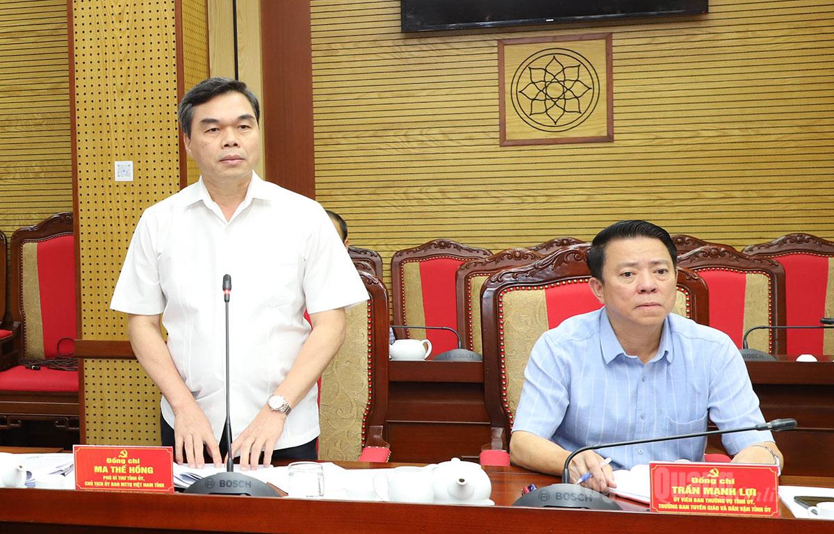 Phó Bí thư Tỉnh ủy, Chủ tịch Ủy ban MTTQ tỉnh Ma Thế Hồng phát biểu thảo luận tại hội nghị.
