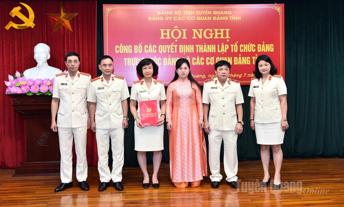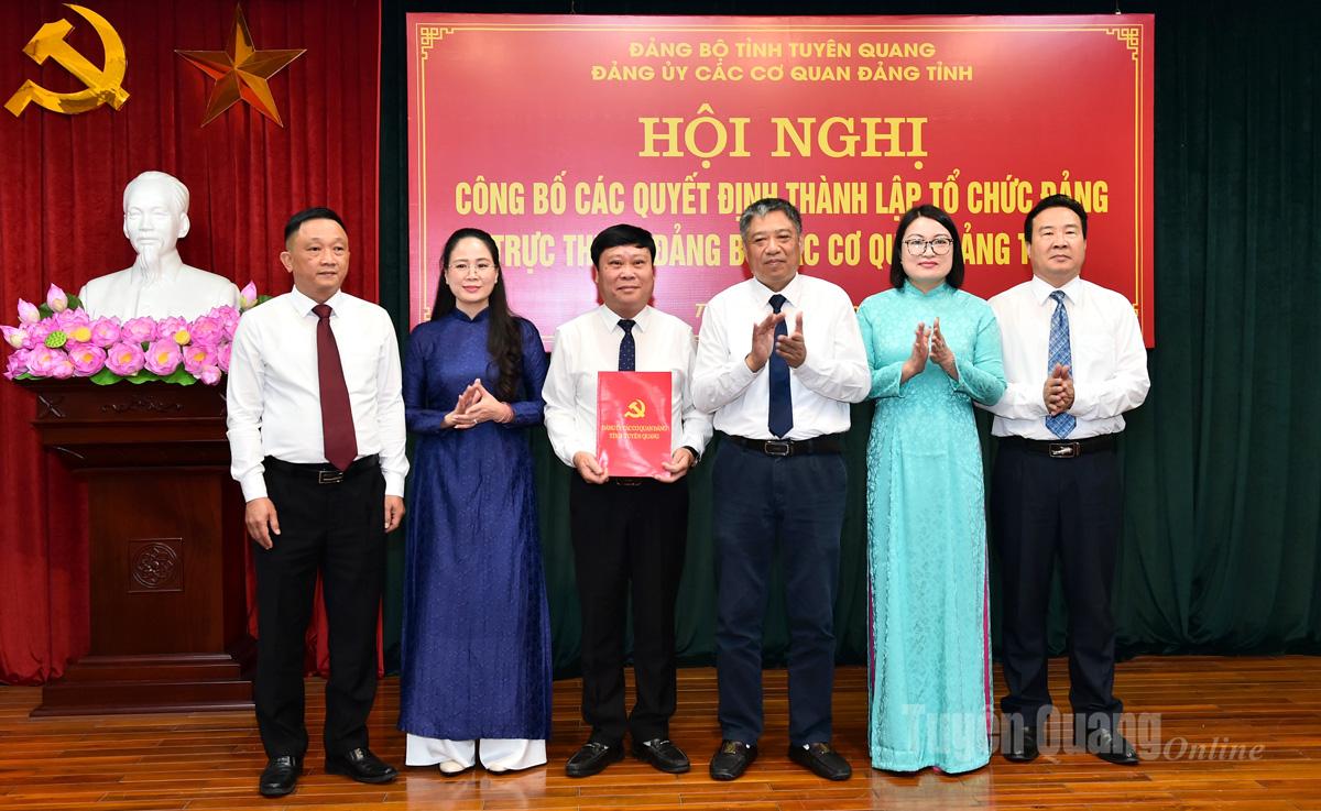 Các tổ chức đảng được thành lập gồm các Đảng bộ: HĐND tỉnh; Ban Tổ chức Tỉnh ủy; Ủy ban Kiểm tra Tỉnh ủy; Ban Nội chính Tỉnh ủy; Ban Tuyên giáo và Dân vận Tỉnh ủy; Văn phòng Tỉnh ủy; Mặt trận Tổ quốc Việt Nam tỉnh; Báo và Phát thanh, Truyền hình Tuyên Quang; Trường Chính trị tỉnh; Tòa án nhân dân tỉnh; Viện Kiểm sát nhân dân tỉnh và Chi bộ cơ quan Đảng ủy các cơ quan Đảng tỉnh.
