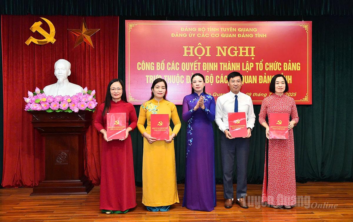 Tại hội nghị, Ban Tổ chức đã công bố các quyết định của Ban Chấp hành Đảng bộ các cơ quan Đảng tỉnh về thành lập 12 tổ chức cơ sở đảng trực thuộc, gồm 11 đảng bộ và 1 chi bộ. Việc thành lập được thực hiện trên cơ sở hợp nhất các tổ chức đảng tương ứng của tỉnh Tuyên Quang và tỉnh Hà Giang sau khi sáp nhập, đảm bảo đồng bộ, thống nhất với bộ máy tổ chức mới.