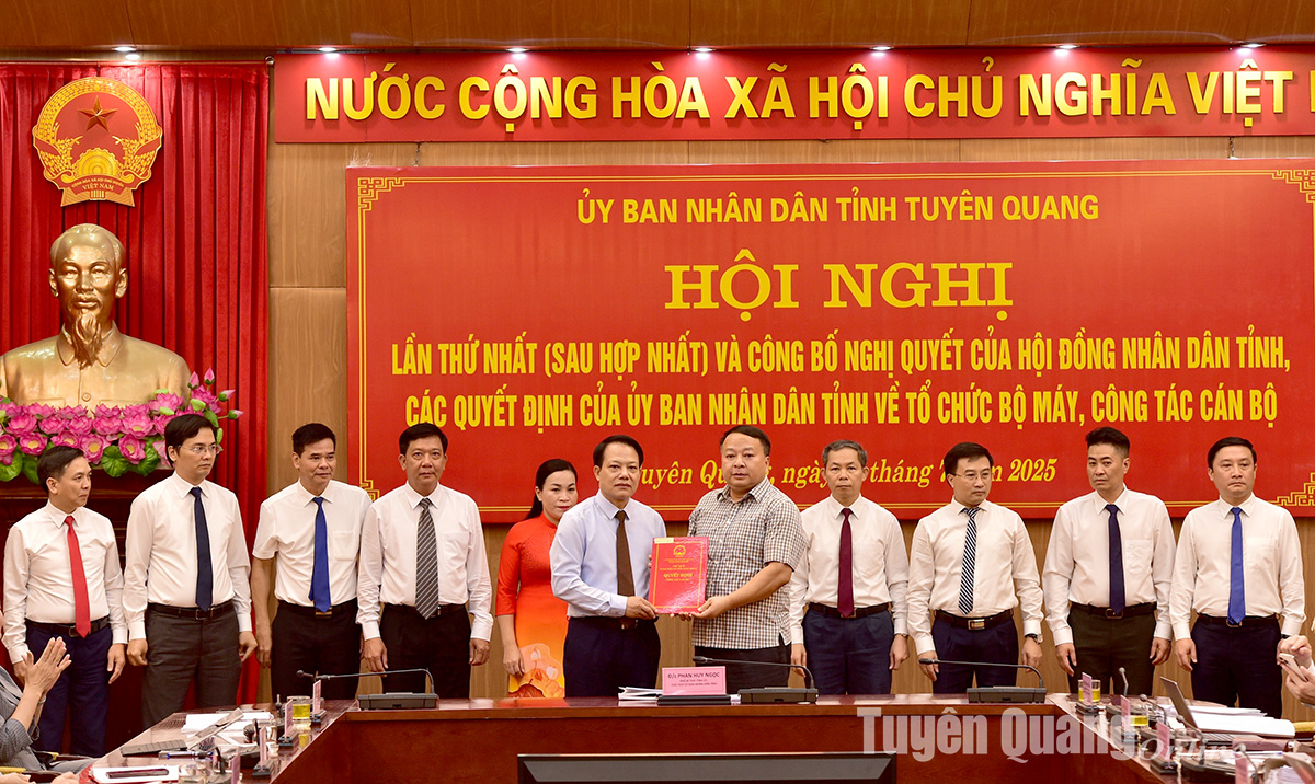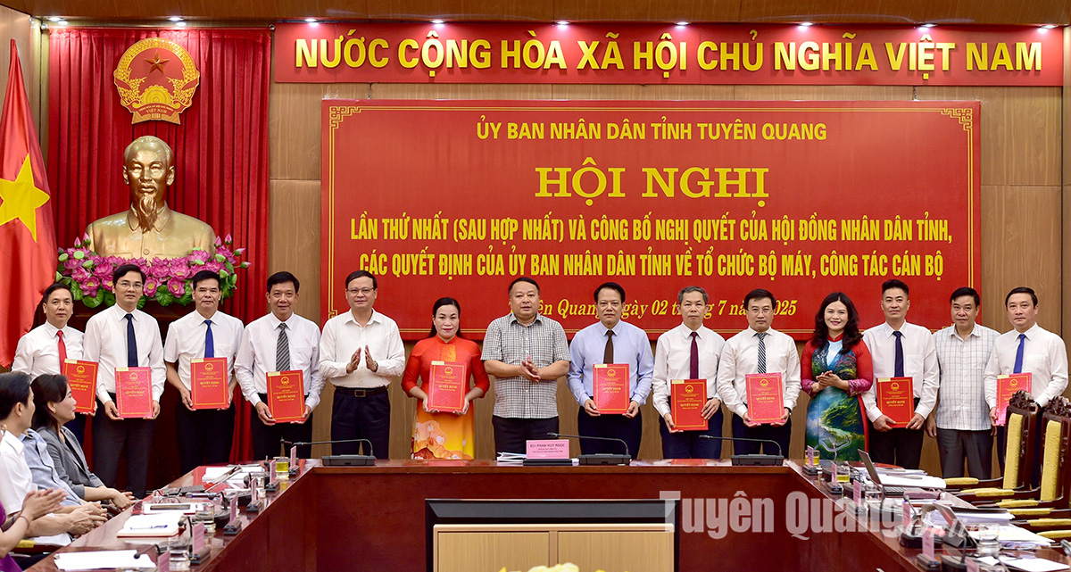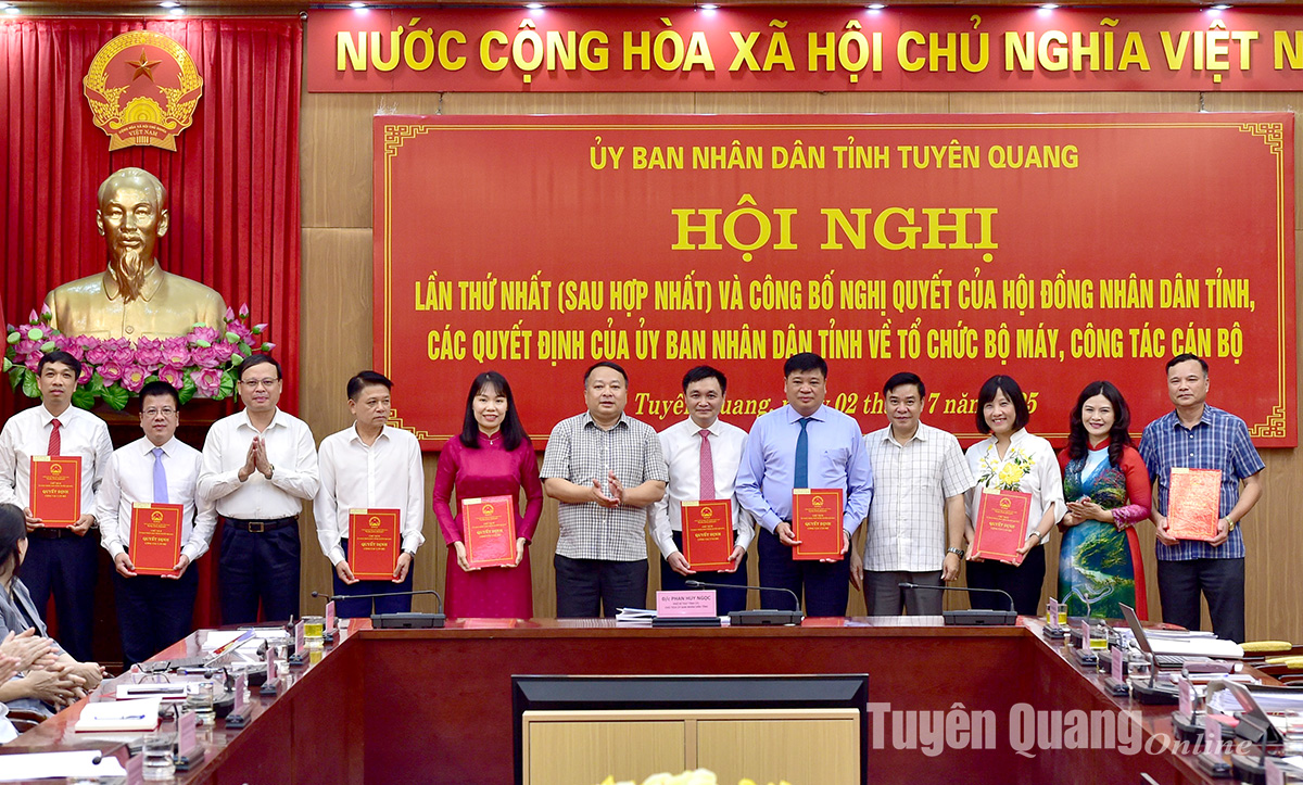 Công bố các Quyết định của Chủ tịch UBND tỉnh về việc tiếp nhận các cơ quan thuộc UBND tỉnh Hà Giang quản lý về UBND tỉnh Tuyên Quang gồm: Ban quản lý dự án vốn nước ngoài; Ban quản lý dự án xây dựng công trình tỉnh; Ban quản lý Khu kinh tế tỉnh; Trung tâm phát triển quỹ đất; Trường Cao đẳng nghề Kỹ thuật và Công nghệ. Công bố các quyết định về tiếp nhận, bổ nhiệm chức vụ Thủ trưởng 19 sở, ngành, đơn vị trực thuộc UBND tỉnh.