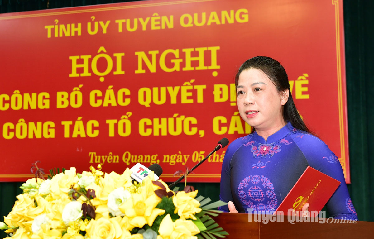 Tại hội nghị, đồng chí Lê Thị Kim Dung, Phó Bí thư Thường trực Tỉnh ủy, Chủ tịch HĐND tỉnh đã công bố Quyết định của Ban Bí thư Trung ương Đảng về việc chuẩn y đồng chí Ma Thế Hồng, Ủy viên Ban Thường vụ Tỉnh ủy, Trưởng Ban Tổ chức Tỉnh ủy giữ chức Phó Bí thư Tỉnh ủy Tuyên Quang nhiệm kỳ 2020-2025.
