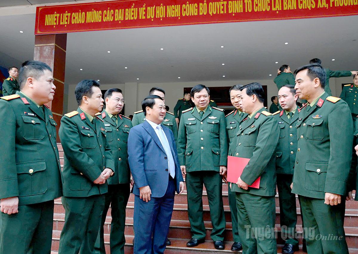 Theo đó, tỉnh Tuyên Quang tổ chức lại 124 Ban CHQS cấp xã, phường trực thuộc Bộ CHQS tỉnh. Trong đó có 68 xã trọng điểm về quốc phòng, biên chế gồm 10 đồng chí (7 sĩ quan, 3 quân nhân chuyên nghiệp); 56 xã còn lại biên chế gồm 8 đồng chí (6 sĩ quan, 2 quân nhân chuyên nghiệp).