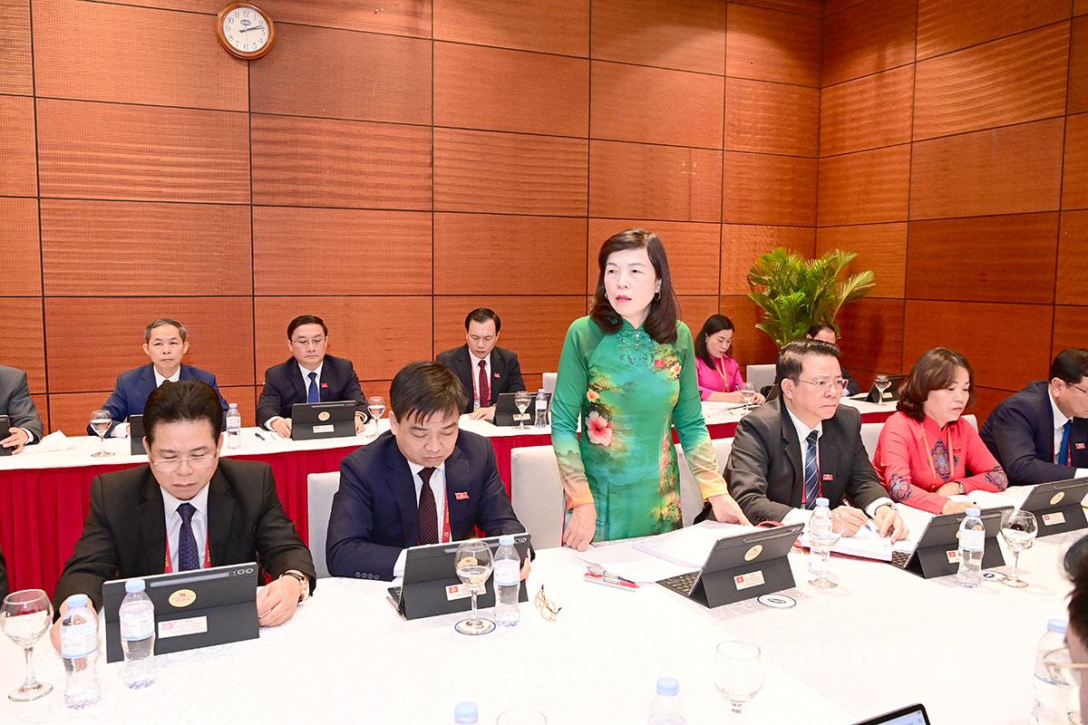 Đồng chí Phạm Thị Minh Xuân, Ủy viên Ban Thường vụ Tỉnh ủy, Phó Chủ tịch HĐND tỉnh phát biểu thảo luận. Ảnh: Việt Hòa.