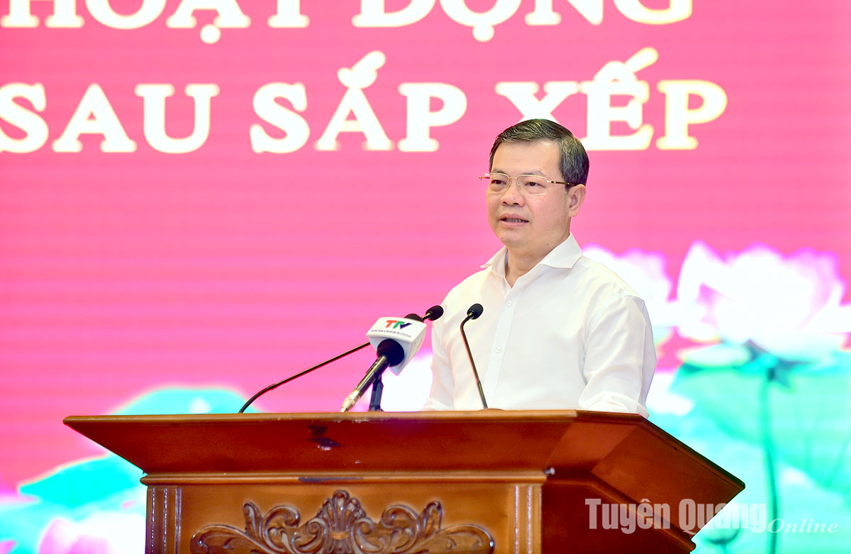 Tại hội nghị, lãnh đạo Ban Tổ chức Tỉnh ủy, HĐND tỉnh, UBND tỉnh, Ủy ban MTTQ Việt Nam tỉnh thông báo chủ trương của Ban Thường vụ Tỉnh ủy về công tác cán bộ chủ chốt của 51 xã, phường sau sắp xếp; quán triệt, triển khai các nội dung công việc của Đảng ủy, HĐND, UBND, Ủy ban MTTQ và các tổ chức chính trị - xã hội cấp xã phải tổ chức thực hiện triển khai từ nay đến hết ngày 30-6 và từ ngày 1-7 trở đi.