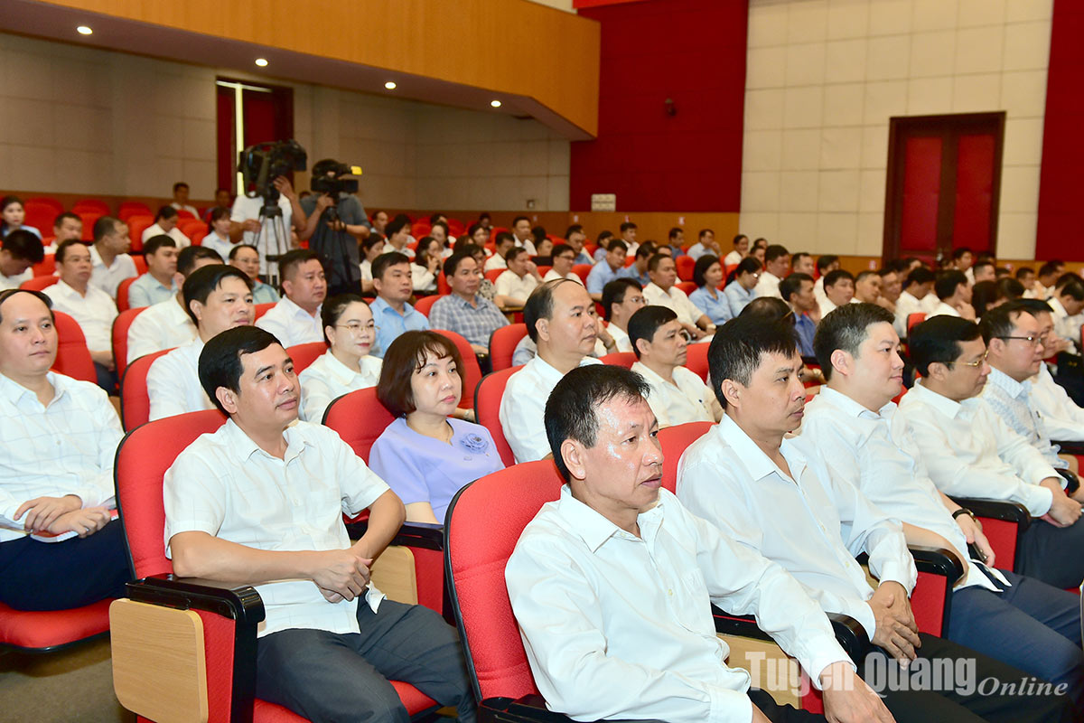 Đồng chí Bí thư Tỉnh ủy đề nghị các cơ quan, đơn vị, địa phương và từng cán bộ, đảng viên, nhất là cán bộ lãnh đạo, quản lý, người đứng đầu cấp ủy, chính quyền, địa phương tiếp tục phát huy mạnh mẽ truyền thống quê hương cách mạng, tinh thần đoàn kết, thống nhất, nêu cao ý chí, ý thức trách nhiệm, tự lực, tự cường, vượt qua mọi khó khăn, thách thức để thực hiện thắng lợi cuộc cách mạng tinh gọn bộ máy cũng như các mục tiêu nghị quyết đại hội đảng bộ các cấp nhiệm kỳ 2025-2030 đã đề ra…