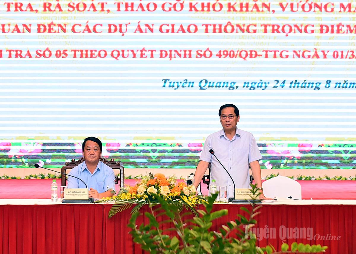 Phó Thủ tướng Chính phủ Bùi Thanh Sơn đã ghi nhận và đánh giá cao sự vào cuộc quyết liệt của cấp ủy, chính quyền và sự nỗ lực của các nhà đầu tư, đơn vị thi công trong thời gian qua. Qua đó, các dự án cao tốc Tuyên Quang - Hà Giang, Hữu Nghị - Chi Lăng, Đồng Đăng - Trà Lĩnh đã có những bước chuyển biến rõ rệt, nhiều hạng mục được đẩy nhanh tiến độ, công tác giải phóng mặt bằng cơ bản đạt kết quả tích cực. Tuy nhiên, tiến độ chung của các dự án vẫn còn chậm so với yêu cầu; một số khó khăn về vốn, nguồn vật liệu, di dời hạ tầng kỹ thuật và tái định cư chưa được xử lý triệt để, nếu không có giải pháp mạnh mẽ và đồng bộ thì rất khó bảo đảm mục tiêu thông tuyến trong năm 2025.