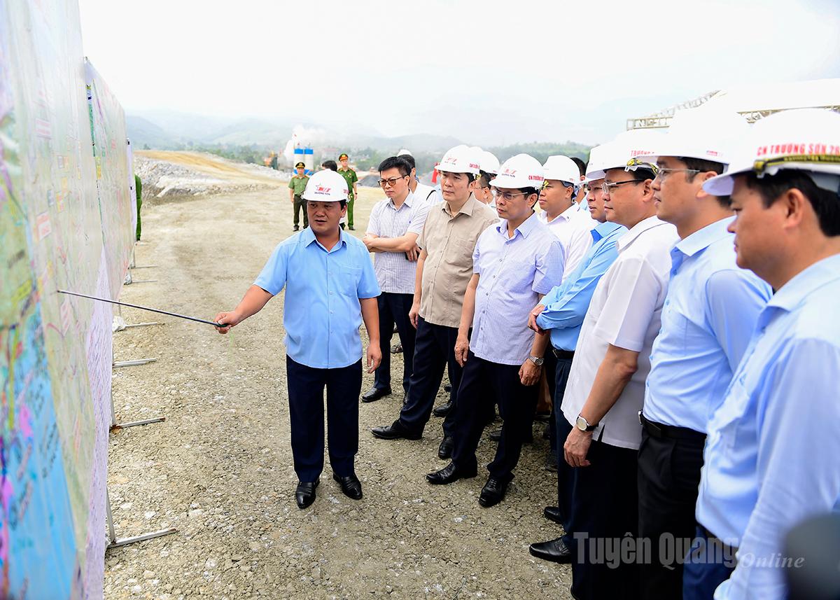 Phó Thủ tướng Chính phủ, Bùi Thanh Sơn và các đồng chí lãnh đạo tỉnh kiểm tra tiến độ cao tốc Tuyên Quang Hà Giang, đoạn qua phường Mỹ Lâm.
