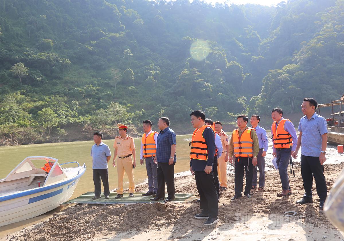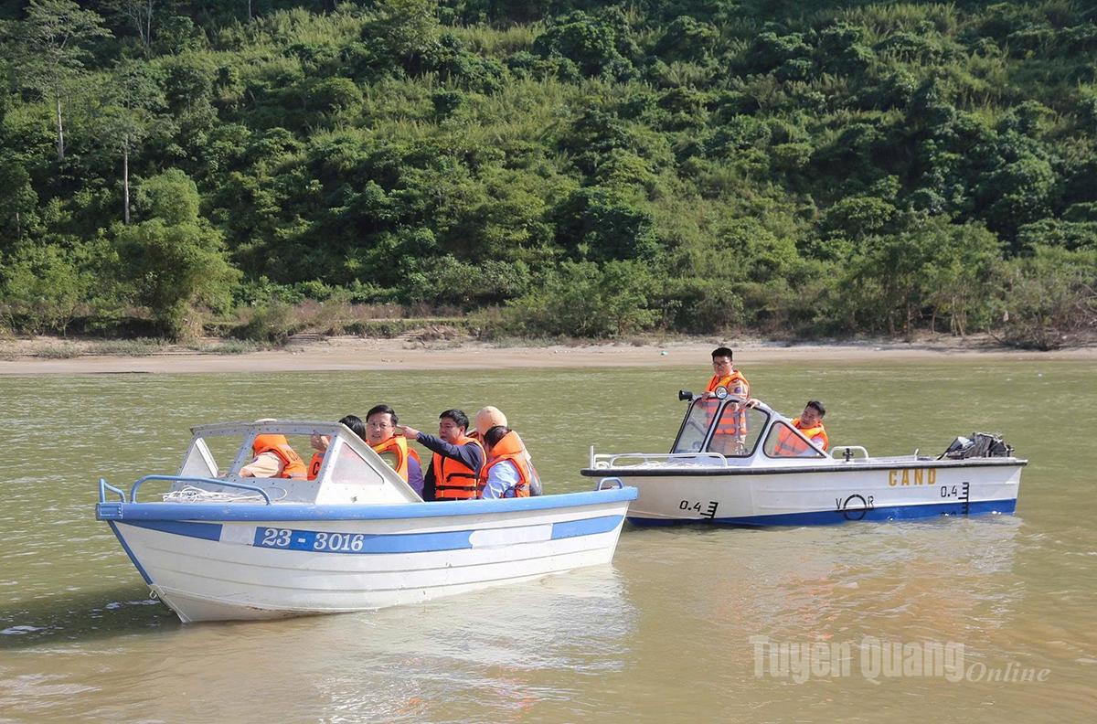 Đoàn công tác khảo sát thực tế trên sông Lô khu vực phường Hà Giang 1.