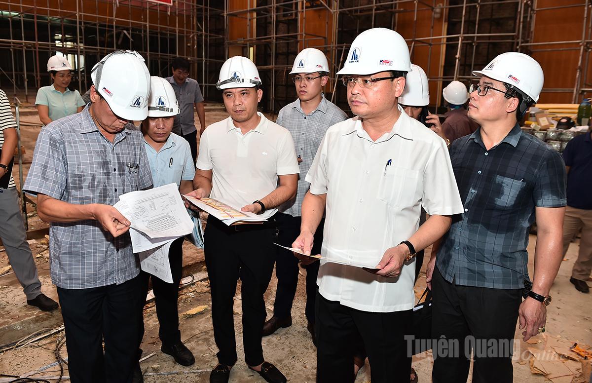 Đồng chí Nguyễn Mạnh Tuấn, Ủy viên Ban Thường vụ Tỉnh ủy, Phó Chủ tịch Thường trực UBND tỉnh kiểm tra tiến độ thi công Trung tâm Hội nghị tỉnh.