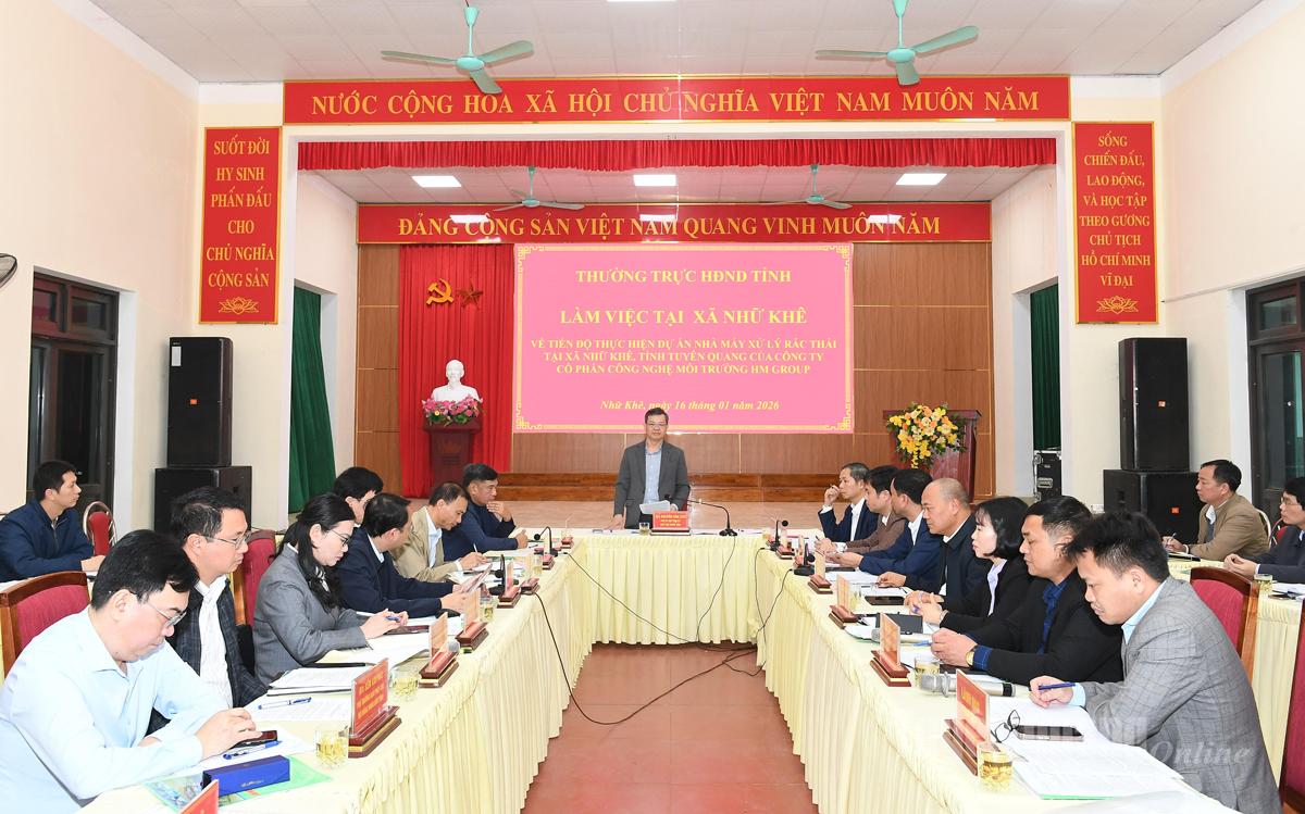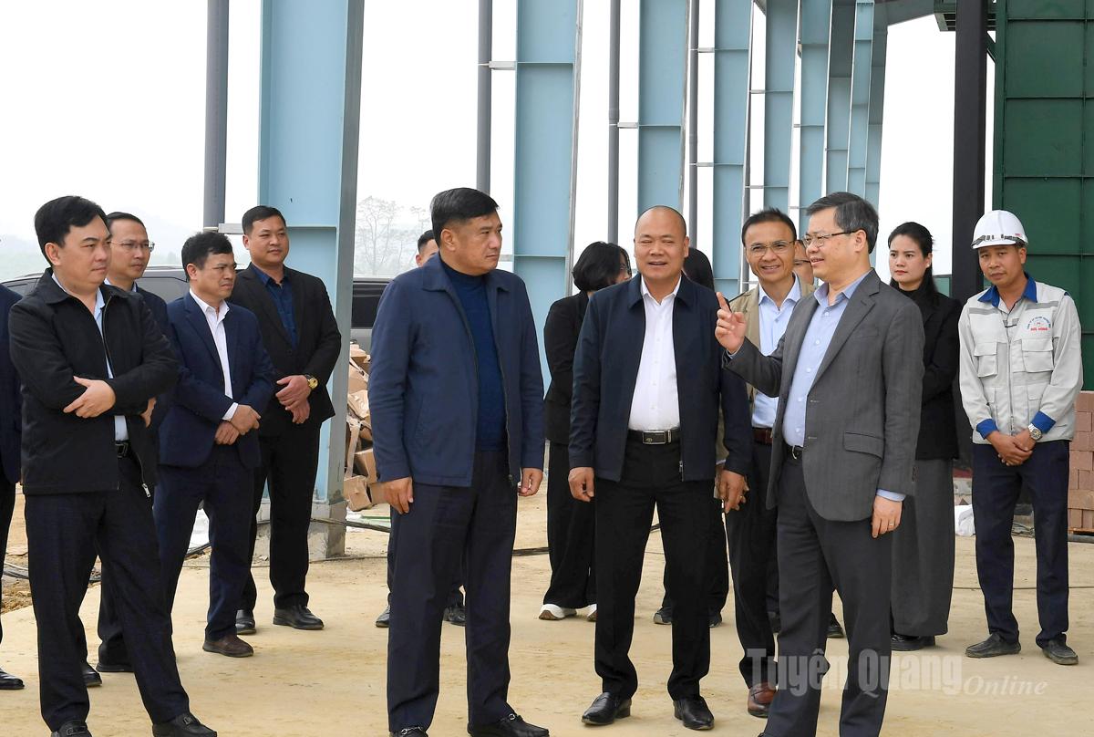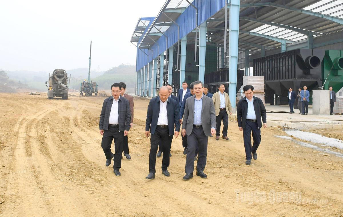 Đồng chí Chủ tịch HĐND tỉnh Nguyễn Văn Sơn và đoàn công tác đã khảo sát thực tế tại công trường thi công Nhà máy xử lý rác thải tại xã Nhữ Khê, đồng thời làm việc với chủ đầu tư, đơn vị thi công về những khó khăn, vướng mắc, các giải pháp tháo gỡ những khó khăn vướng mắc, đẩy nhanh tiến độ thi công dự án.