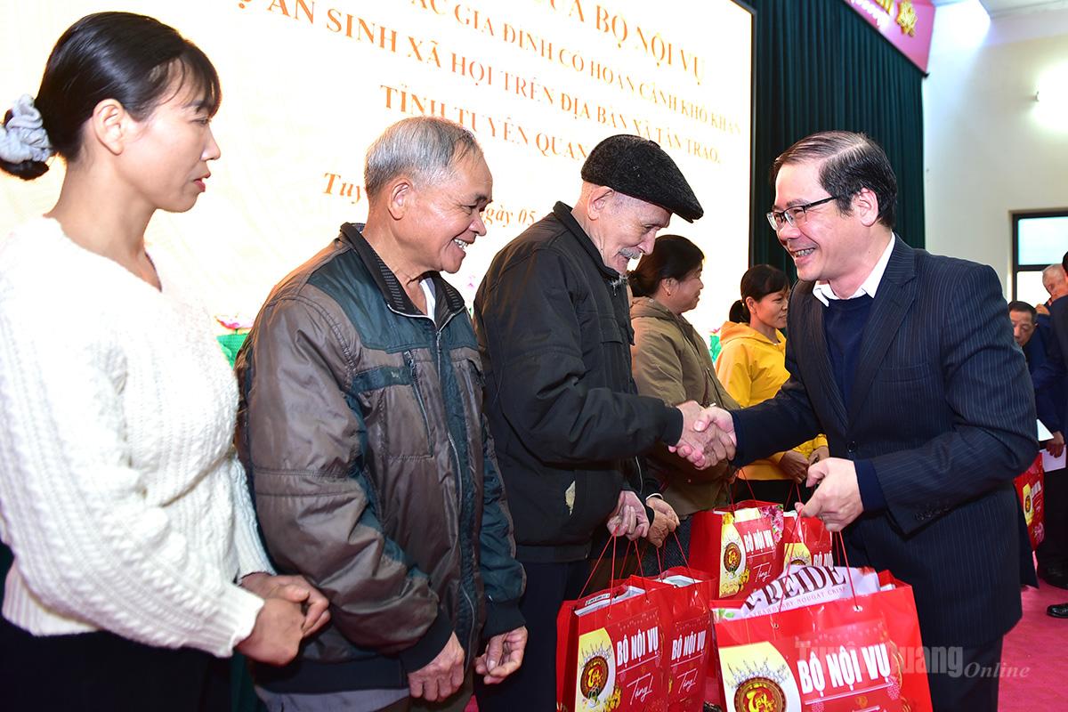 Trong chương trình, Bộ trưởng Bộ Nội vụ Đỗ Thanh Bình và đoàn công tác đã trao 50 suất quà Tết, mỗi suất trị giá 1 triệu đồng tặng các gia đình chính sách, hộ có hoàn cảnh khó khăn tại xã Tân Trào. Bộ Nội vụ đồng thời tặng 150 triệu đồng cho UBND xã Tân Trào thực hiện công tác an sinh xã hội và trang cấp thiết bị phục vụ nhiệm vụ.