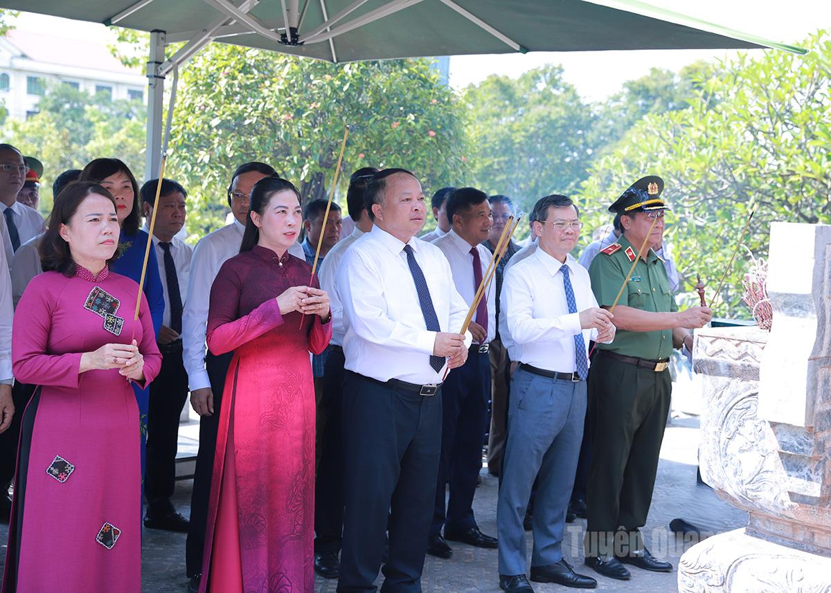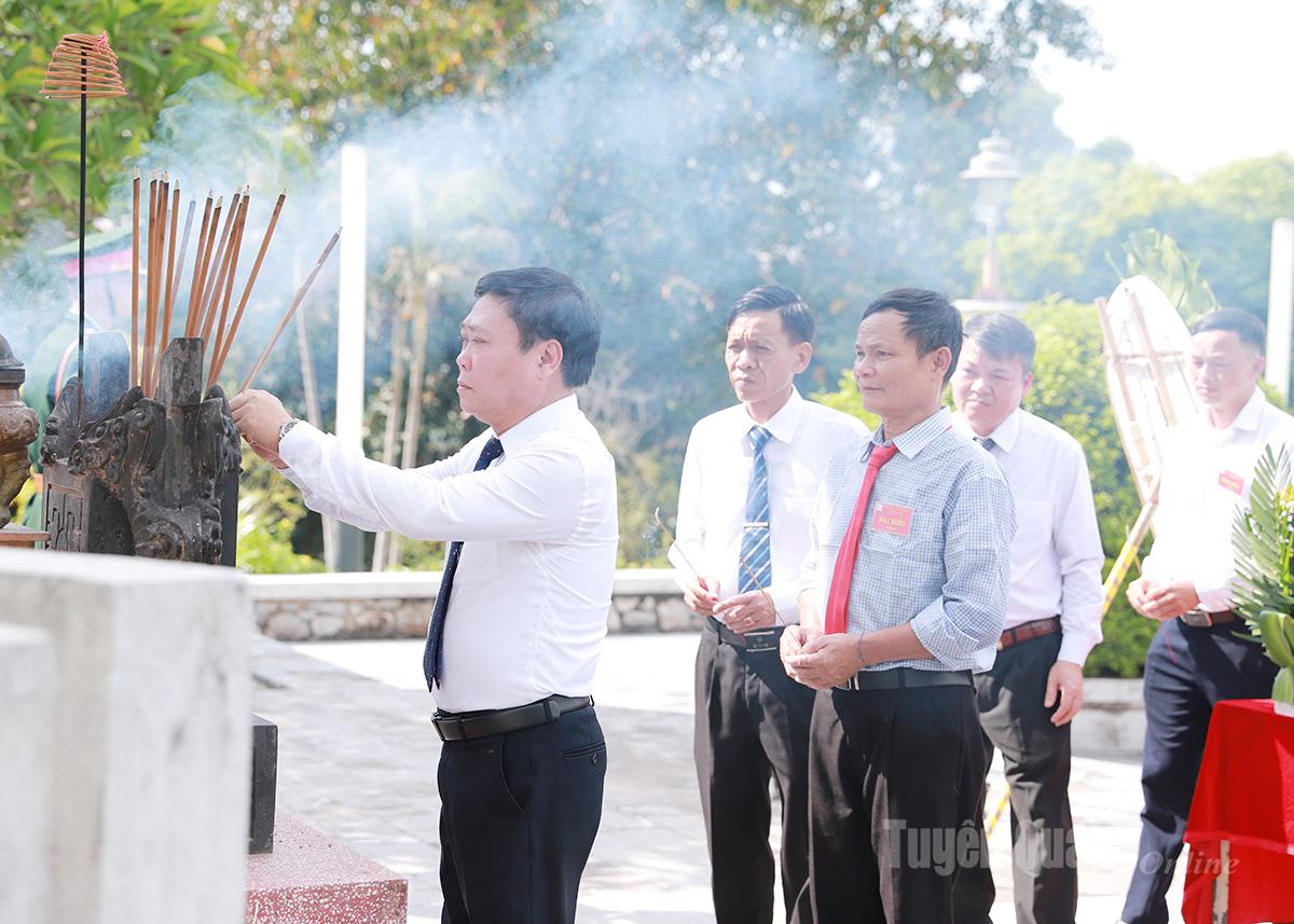 Tham gia dâng hương có các đồng chí: Lê Thị Kim Dung, Phó Bí thư Thường trực Tỉnh ủy; Nguyễn Văn Sơn, Phó Bí thư Tỉnh ủy, Chủ tịch HĐND tỉnh; các đồng chí trong Ban Thường vụ Tỉnh ủy, Ban Chấp hành Đảng bộ tỉnh và các đại biểu là điển hình tiên tiến các xã, các ngành.