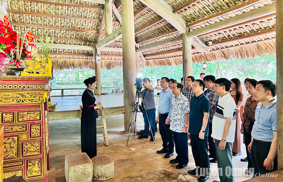 Các đại biểu nghe giới thiệu về lịch sử của Đình Tân Trào.