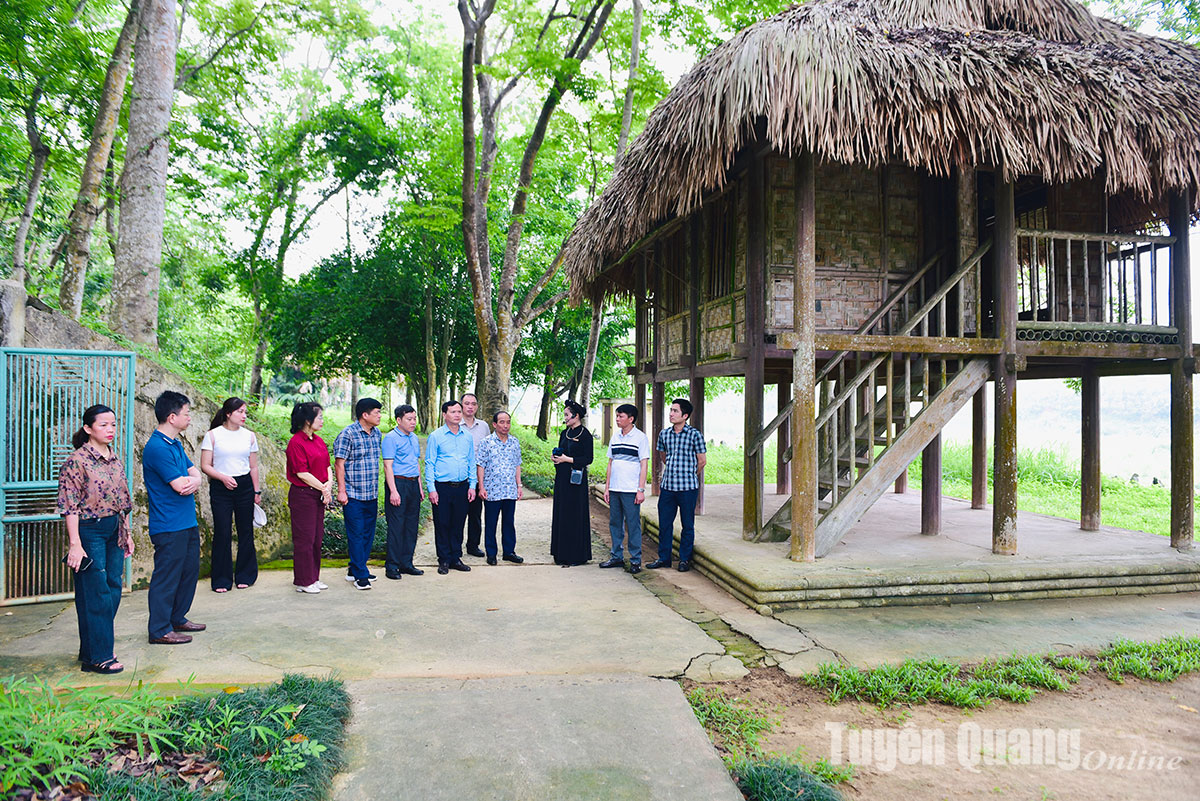 Các đại biểu thăm di tích lán ở và làm việc của Chủ tịch Tôn Đức Thắng tại xã Trung Yên (Sơn Dương).