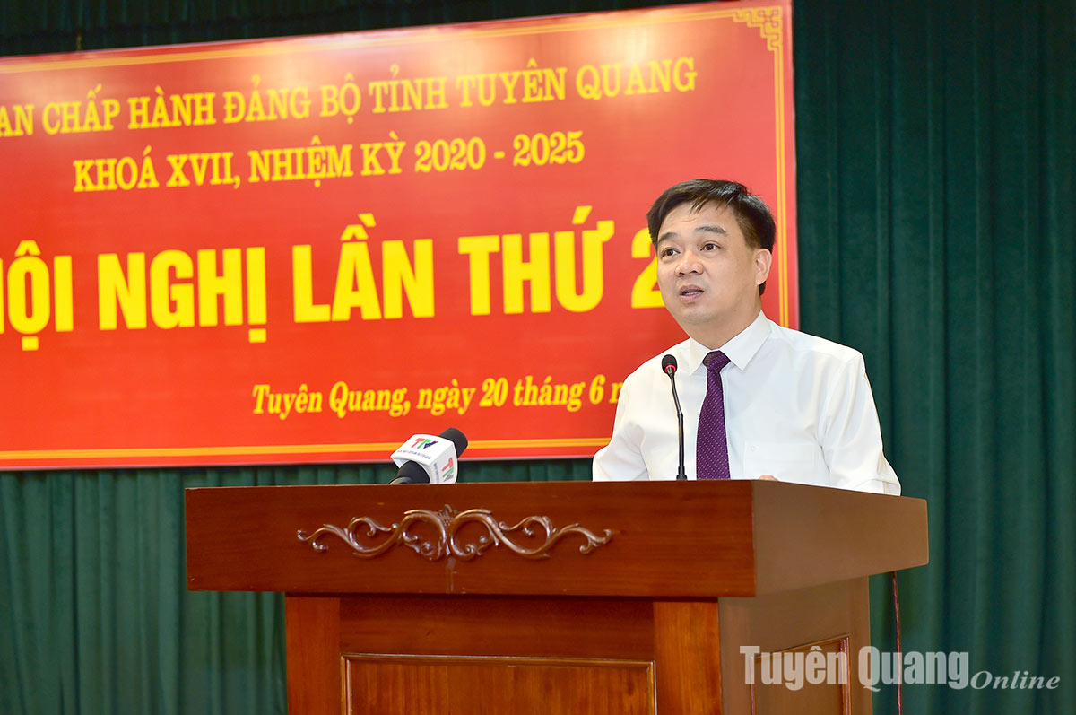Đồng chí Bí thư Tỉnh ủy nhấn mạnh: Nhiệm vụ phía trước là rất cao cả, nhưng sẽ không ít khó khăn, thứ thách, mong muốn toàn thể các đồng chí Ủy viên BCH Đảng bộ tỉnh; các cấp ủy đảng, cơ quan, đơn vị, cán bộ, đảng viên trong toàn tỉnh tiếp tục nêu cao tinh thần trách nhiệm, phát huy truyền thống quê hương cách mạng, đoàn kết, đồng lòng, chung sức sớm hòa nhập với bộ máy mới để tập trung lãnh đạo, chỉ đạo và tổ chức thực hiện thắng lợi các nhiệm vụ chính trị được giao, sớm dưa Tuyên Quang mới trở thành tỉnh phát triển khá, thu nhập trung bình cao của vùng Trung du và miền núi Bắc Bộ, cùng cả nước bước vào Kỷ nguyên mới - Kỷ nguyên vươn mình phát triển giàu mạnh, thịnh vượng.