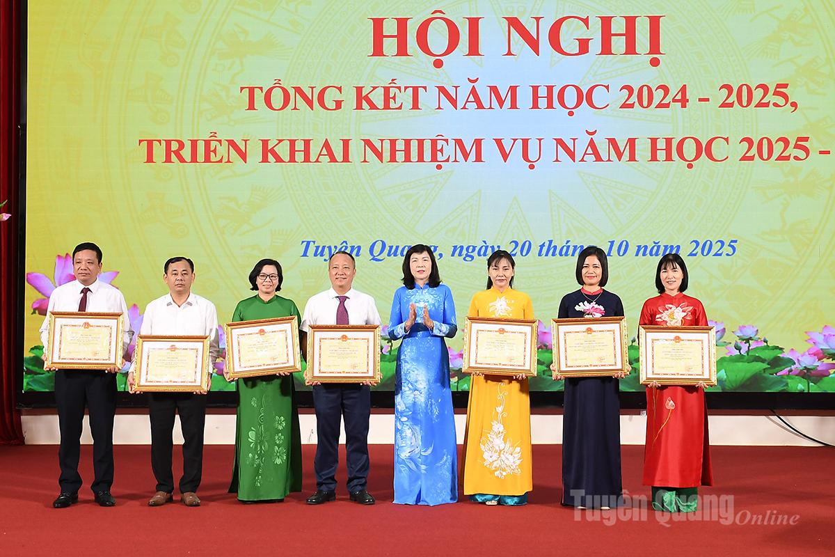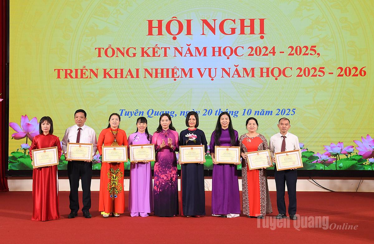 Ngành Giáo dục và Đào tạo tỉnh xác định mục tiêu, nhiệm vụ trọng tâm của năm học 2025-2026 và đến năm 2030, đó là đổi mới mạnh mẽ tư duy quản lý, phát triển giáo dục và đào tạo. Trong đó, coi giáo dục và đào tạo là nền tảng của sự phát triển tỉnh Tuyên Quang mới, ưu tiên hàng đầu trong chiến lược phát triển con người, tạo động lực cho tăng trưởng kinh tế - xã hội; đổi mới giáo dục lấy học sinh làm gốc, phát triển toàn diện năng lực và phẩm chất; xây dựng đội ngũ nhà giáo và cán bộ quản lý giáo dục vững chuyên môn, giỏi nghiệp vụ, tâm huyết, trách nhiệm, đáp ứng yêu cầu đổi mới. Cùng với đó, tập trung phát triển giáo dục gắn với văn hóa, truyền thống; chủ động hội nhập, cập nhật tinh hoa nhân loại, tận dụng thành tựu khoa học kỹ thuật, nhất là công nghệ số và trí tuệ nhân tạo; tăng cường đầu tư gắn liền với nâng cao hiệu quả quản lý, sử dụng; huy động nguồn lực xã hội hóa, hợp tác công, tư, mở rộng không gian sáng tạo và phát triển giáo dục bền vững. Mục tiêu đến 2030 có trên 73% trường mầm non, trên 80% trường phổ thông đạt chuẩn quốc gia; tỷ lệ phòng học kiên cố đạt 100%; 100% cán bộ, giáo viên ứng dụng thành thạo công nghệ thông tin và khai thác hiệu quả thiết bị dạy học hiện đại; phấn đấu trong nhóm 25-30 tỉnh, thành phố có chất lượng giáo dục phát triển mạnh...