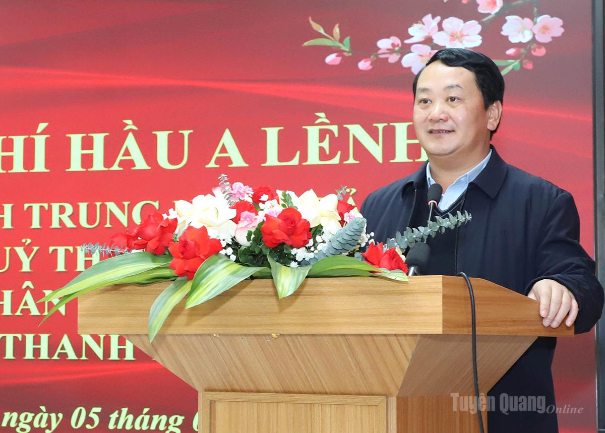 Bí thư Tỉnh ủy Hầu A Lềnh phát biểu chúc Tết Đảng bộ, chính quyền và nhân dân xã Thanh Thủy.