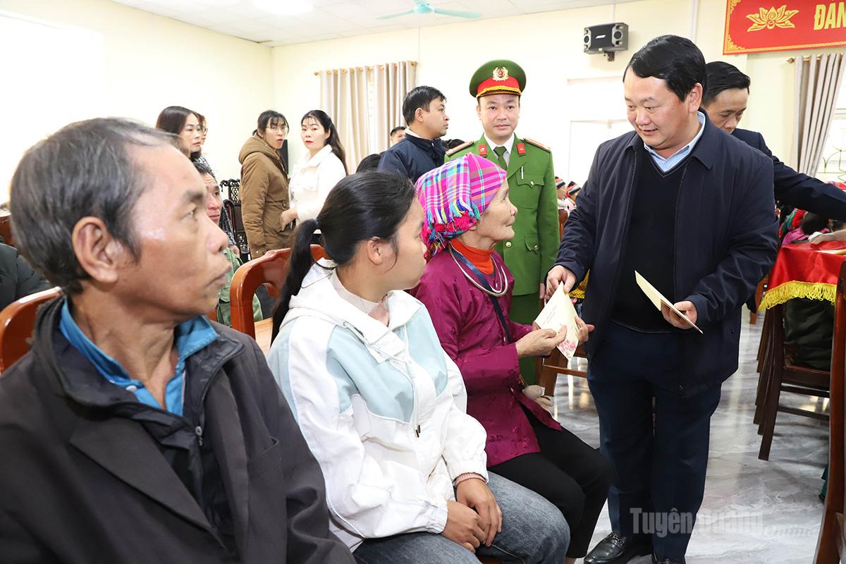 Đồng chí Vân Đình Thảo, Ủy viên Ban Thường vụ Tỉnh ủy, Trưởng Ban Quản lý các khu công nghiệp và khu kinh tế tỉnh tặng quà hộ nghèo xã Thanh Thủy.