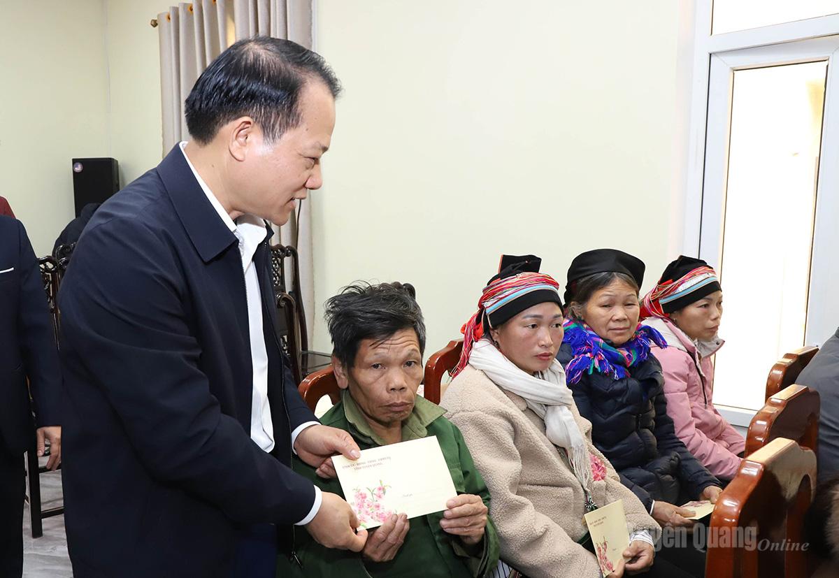 Đến thăm, chúc Tết cấp ủy, chính quyền và Nhân dân xã Thanh Thủy, đồng chí Bí thư Tỉnh ủy trao tặng 50 suất quà cho hộ nghèo trên địa bàn. Đồng chí mong muốn xã nỗ lực hoàn thành các chỉ tiêu năm 2026; đẩy mạnh tuyên truyền, vận động Nhân dân chấp hành tốt chủ trương của Đảng, chính sách, pháp luật của Nhà nước; chăm lo để mọi nhà, mọi người đều có Tết; giữ vững an ninh trật tự; duy trì sĩ số học sinh; bảo tồn, phát huy bản sắc văn hóa dân tộc; tăng cường phòng, chống buôn lậu, gian lận thương mại; vận hành hiệu quả quy chế hoạt động cấp xã, phục vụ tốt nhân dân; đồng thời tăng cường công tác tuyên truyền về cuộc bầu cử, để các cử tri biết và nêu cao trách nhiệm, nghĩa vụ của mình.