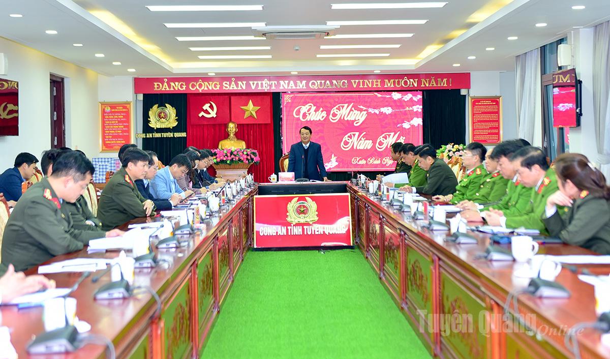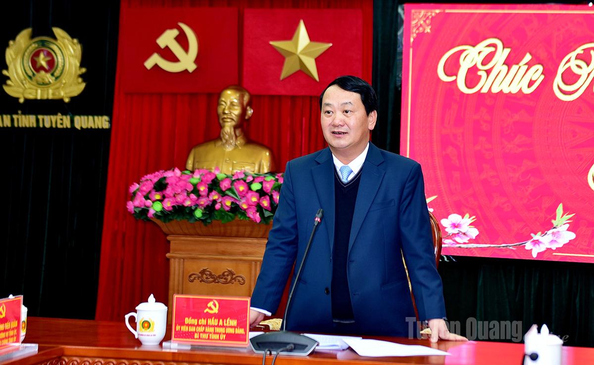Trong không khí phấn khởi chào mừng kỷ niệm 96 năm Ngày thành lập Đảng Cộng sản Việt Nam và chuẩn bị đón Tết Nguyên đán Bính Ngọ 2026, đồng chí Bí thư Tỉnh ủy Hầu A Lềnh biểu dương những kết quả nổi bật của lực lượng Công an toàn tỉnh thời gian qua; gửi lời chúc cán bộ, chiến sĩ Công an tỉnh Tuyên Quang năm mới mạnh khỏe, hạnh phúc, an khang, thịnh vượng, luôn hoàn thành xuất sắc mọi nhiệm vụ được Đảng, Nhà nước và Nhân dân giao phó.