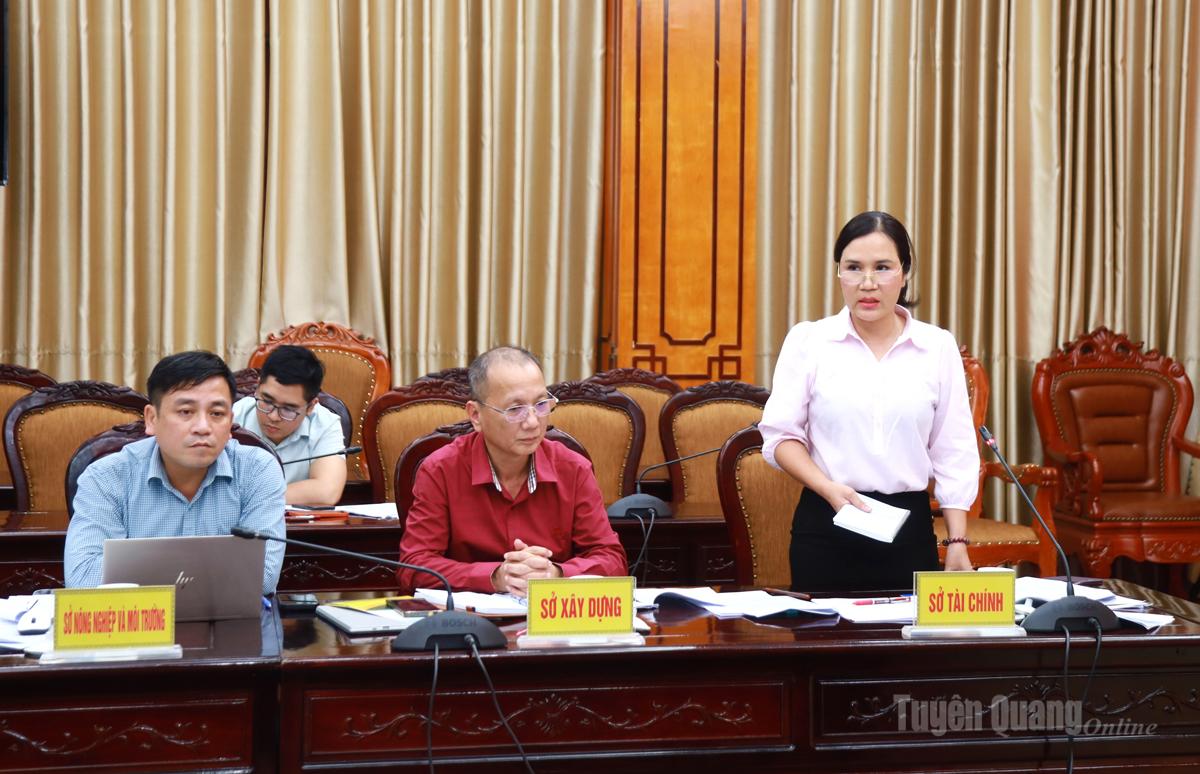Giám đốc Sở Tài chính Phạm Kiều Vân tham gia ý kiến tại buổi làm việc.