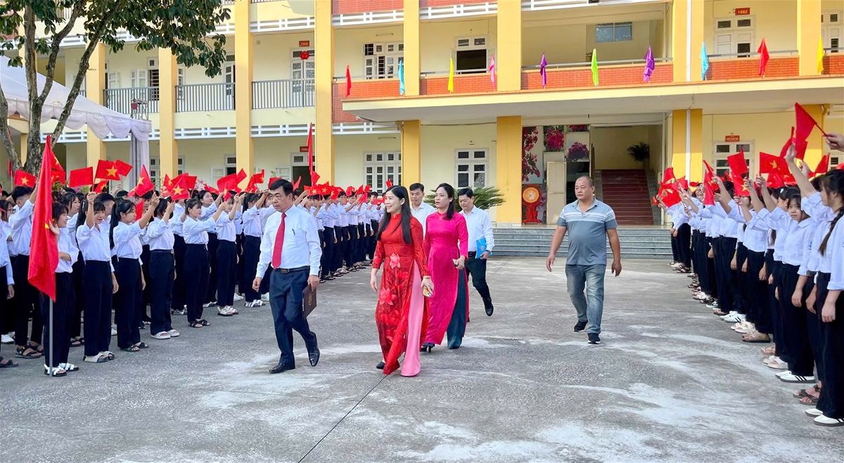 Đồng chí Lê Thị Thanh Trà, Ủy viên BCH Đảng bộ tỉnh, Phó Chủ tịch HĐND tỉnh dự Lễ khai giảng năm học mới tại Trường THPT Xuân Vân.