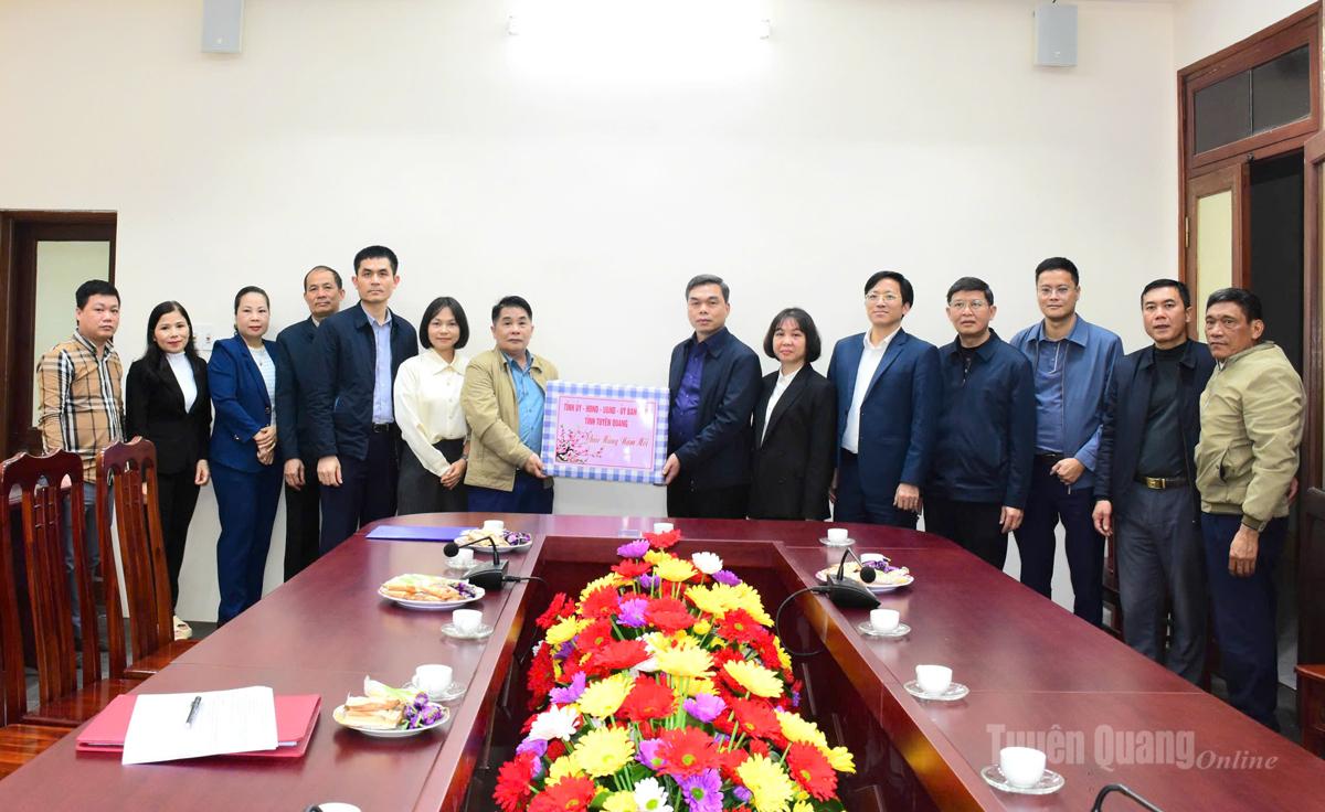 Đồng chí Ma Thế Hồng, Phó Bí thư Tỉnh uỷ, Chủ tịch Ủy ban MTTQ Việt Nam tỉnh Tuyên Quang trao quà Tết của tỉnh cho Công ty cổ phần Dịch vụ môi trường và Quản lý đô thị Tuyên Quang.
