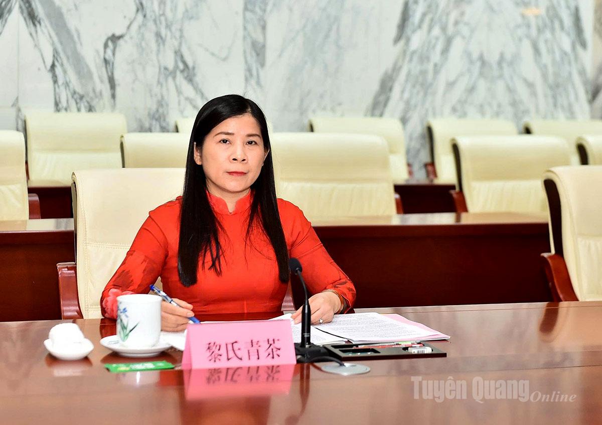 Thay mặt Đoàn đại biểu tỉnh Tuyên Quang, đồng chí Phó Chủ tịch HĐND tỉnh Lê Thị Thanh Trà trân trọng cảm ơn sự đón tiếp trọng thị, chu đáo và thắm tình hữu nghị của lãnh đạo Đại hội đại biểu nhân dân Quảng Tây. Đồng chí khẳng định Đảng bộ, chính quyền và nhân dân tỉnh Tuyên Quang luôn coi trọng, trân quý quan hệ hữu nghị truyền thống Việt Nam - Trung Quốc nói chung, Tuyên Quang - Quảng Tây nói riêng.