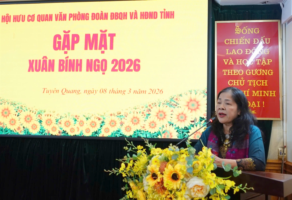 Thay mặt cán bộ hưu trí cơ quan Văn phòng Đoàn ĐBQH và HĐND tỉnh phát biểu tại buổi gặp mặt, bà Nguyễn Thị Độ, Trưởng Ban Liên lạc cán bộ hưu trí cơ quan Văn phòng Đoàn ĐBQH và HĐND tỉnh bày tỏ niềm vui, sự phấn khởi trước những kết quả quan trọng mà HĐND tỉnh trong năm 2025 và nhiệm kỳ 2021 - 2026 đã đạt được, những thành tựu đó tiếp tục khẳng định vị thế của HĐND tỉnh là cơ quan quyền lực nhà nước ở địa phương, thực sự đại diện cho ý chí, nguyện vọng và quyền làm chủ của Nhân dân, góp phần thiết thực vào sự phát triển kinh tế - xã hội của tỉnh.