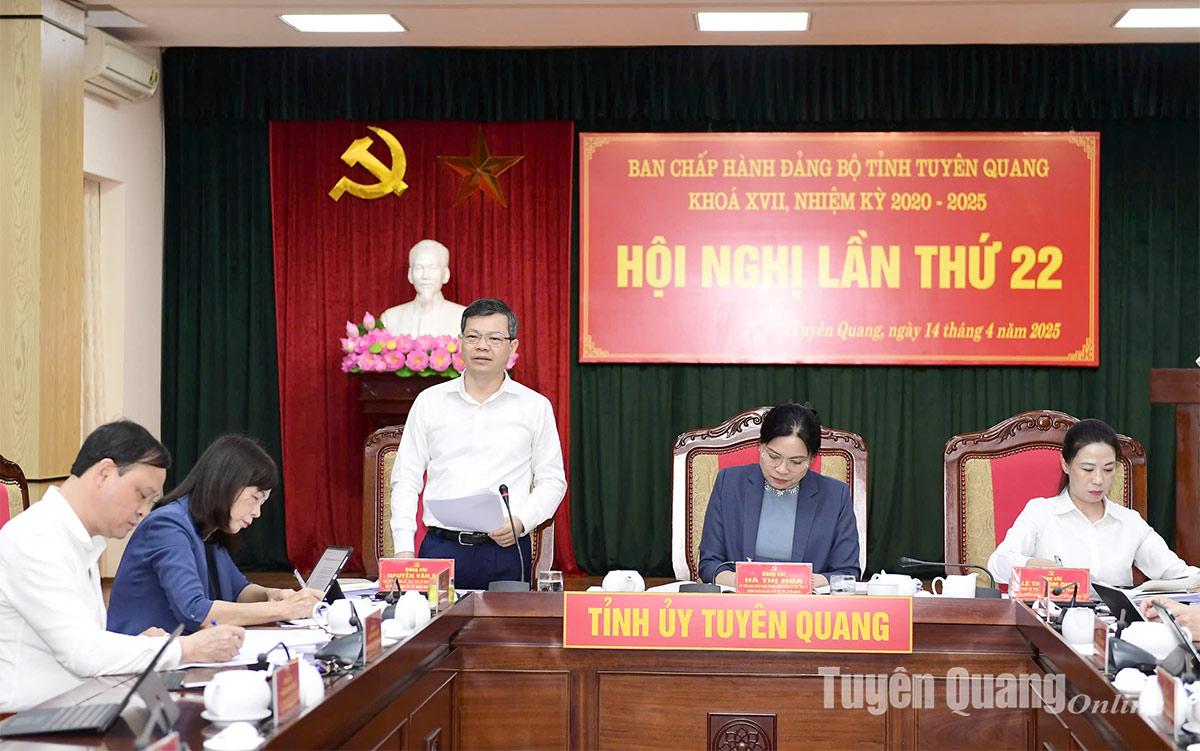 9h00: Đồng chí Nguyễn Hồng Trang, Ủy viên Ban Thường vụ Tỉnh ủy, Chủ nhiệm UBKT Tỉnh ủy trình bày Dự thảo Báo cáo công tác kiểm tra, giám sát, kỷ luật của Đảng quý I/2025; phương hướng, nhiệm vụ quý II/2025.