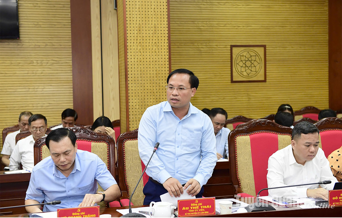 Phát biểu ý kiến thảo luận, đồng chí Bí thư Huyện ủy Lâm Bình Âu Thế Thái cũng nêu 1 số vướng mắc về định mức cấp kinh phí từ các chương trình mục tiêu quốc gia để thực hiện xóa nhà tạm, nhà dột nát; khó khăn trong vấn đề chuyển đổi số và đổi mới sáng tạo, số hóa tài liệu các cơ quan còn lúng túng, lý do huyện Lâm Bình còn nhiều vùng lõm. Đồng chí đề nghị lãnh đạo tỉnh sớm chỉ đạo ngành chức năng có giải pháp để xóa vùng lõm trên địa bàn huyện; có cơ chế, chính sách để đảm bảo an ninh trật tự trên địa bàn…