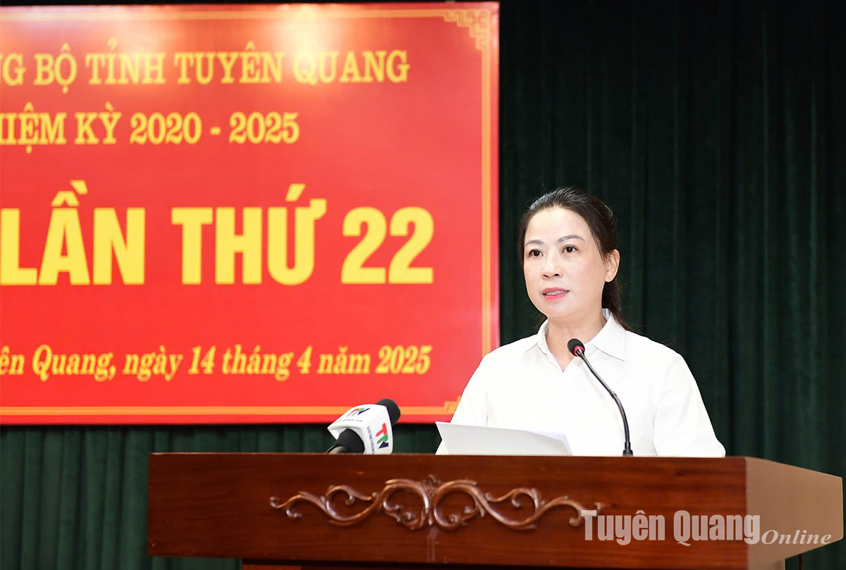 8h45: Đồng chí Lê Thị Kim Dung, Phó Bí thư Thường trực Tỉnh ủy, Chủ tịch HĐND tỉnh trình bày Báo cáo của Ban Chấp hành Đảng bộ tỉnh về công tác lãnh đạo thực hiện nhiệm vụ phát triển kinh tế - xã hội, bảo đảm quốc phòng, an ninh, xây dựng Đảng và hệ thống chính trị quý I/2025; phương hướng, nhiệm vụ quý II/2025.