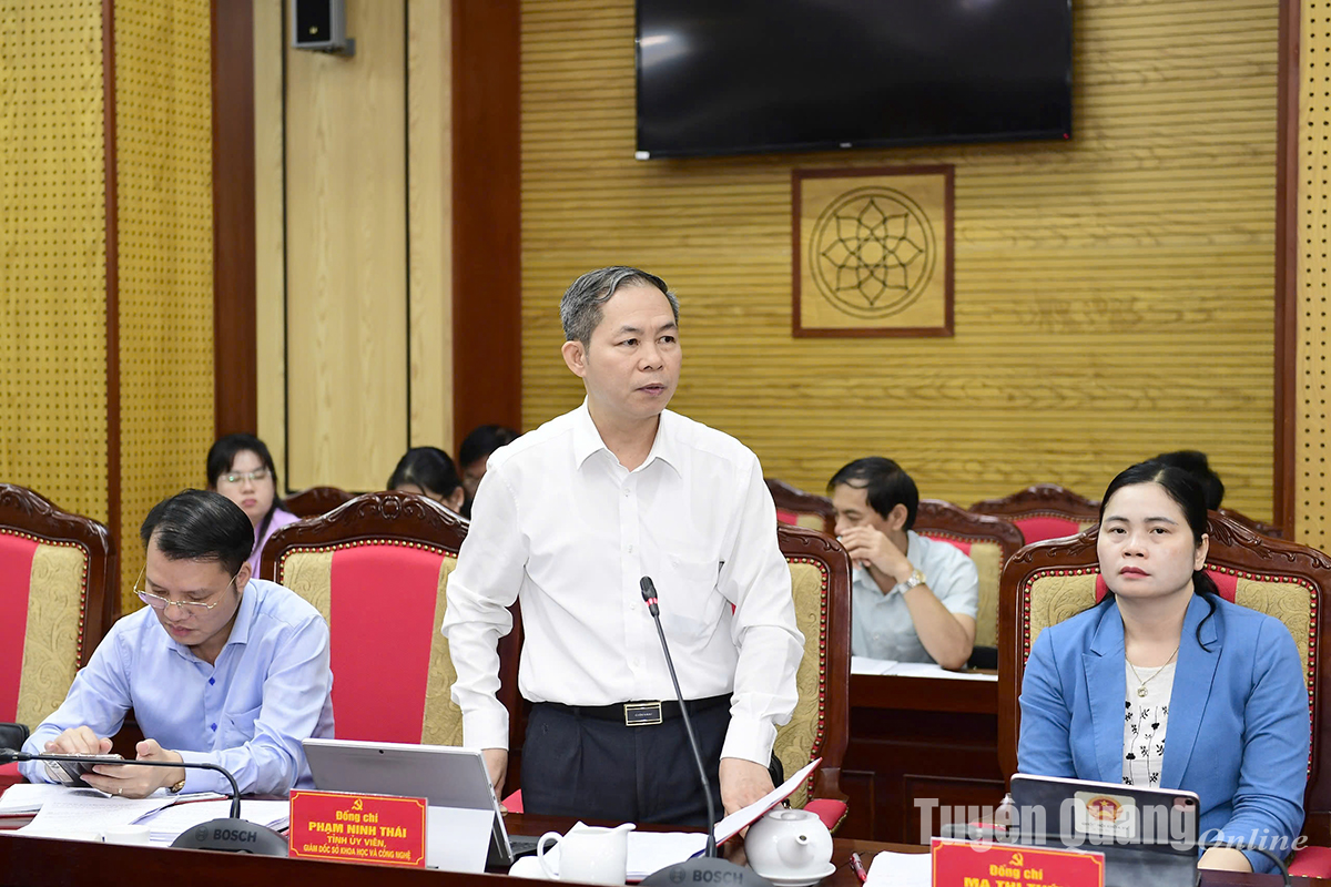 Đồng chí Phạm Ninh Thái, Ủy viên BCH Đảng bộ tỉnh, Giám đốc Sở Khoa học và Công nghệ đánh giá, tỉnh đã đẩy mạnh thực hiện Nghị quyết số 57-NQ/TW ngày 22/12/2024 của Bộ Chính trị về đột phá phát triển khoa học, công nghệ, đổi mới sáng tạo và chuyển đổi số quốc gia. Thời gian tới, các ngành, địa phương chủ động đề xuất nền tảng số; thực hiện dữ liệu số các địa phương, kết nối liên thông tỉnh, xã và trung ương …