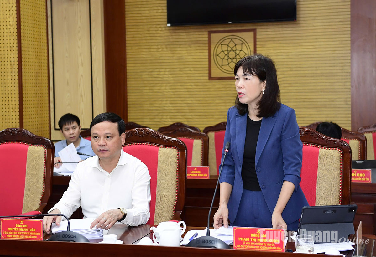 Đồng chí Phạm Thị Minh Xuân, Ủy viên Ban Thường vụ Tỉnh ủy, Phó Chủ tịch Thường trực HĐND tỉnh nêu, đối với các nghị quyết, UBND tỉnh đã khẩn trương chỉ đạo các cơ quan kịp thời bổ sung, điều chỉnh, sửa đổi hoặc bãi bỏ, thay thế bảo đảm phù hợp với tình hình hiện nay. Đề nghị các ngành, cùng UBND tỉnh tiếp tục phối hợp với HĐND tỉnh để thực hiện hiệu quả...