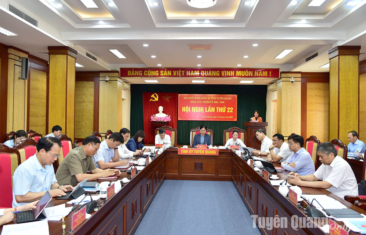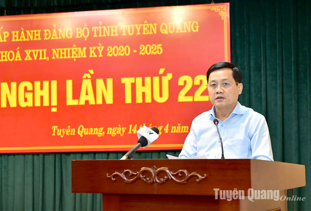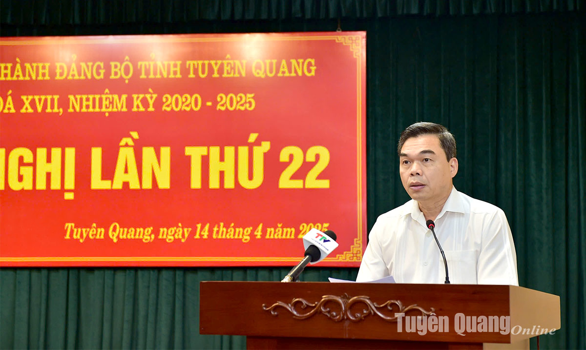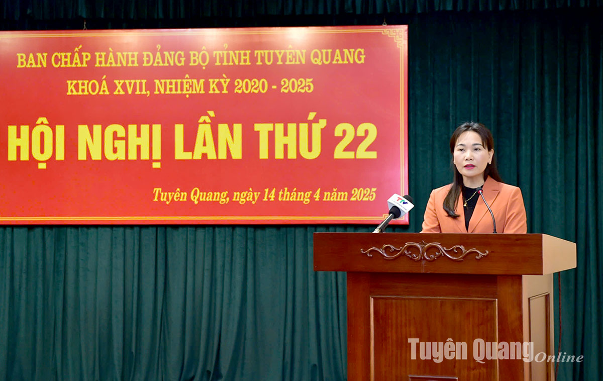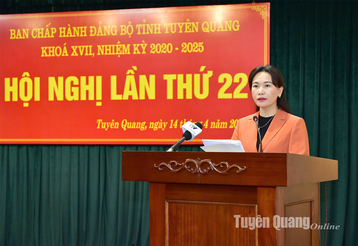 14h15: Đồng chí Nguyễn Thế Giang, Ủy viên BCH Đảng bộ tỉnh, Phó Chủ tịch UBND tỉnh trình bày Dự thảo Báo cáo của BCH Đảng bộ tỉnh về tổng kết Nghị quyết số 16-NQ/TU ngày 22/5/2016 của BCH Đảng bộ tỉnh (khóa XVI) về phát triển nông nghiệp hàng hóa giai đoạn 2016-2025; Dự thảo Báo cáo của BCH Đảng bộ tỉnh về sơ kết Nghị quyết số 39-NQ/TU ngày 26/6/2021 của BCH Đảng bộ tỉnh về phát triển lâm nghiệp bền vững tỉnh Tuyên Quang giai đoạn 2021-2030.