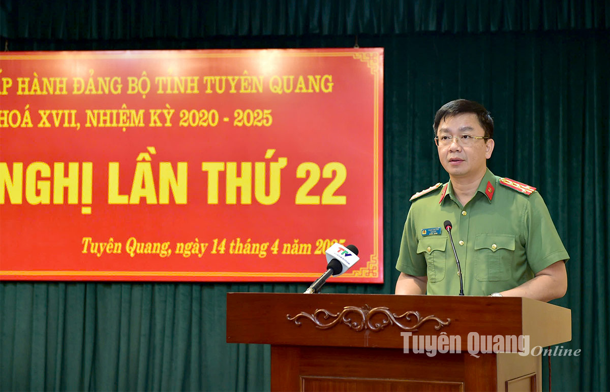 Đồng chí Phạm Kim Đĩnh, Ủy viên Ban Thường vụ Tỉnh ủy, Giám đốc Công an tỉnh quán triệt Kết luận số 124-KL/TW ngày 10/02/2025 của Bộ Chính trị về tiếp tục sắp xếp, tinh gọn tổ chức bộ máy công an địa phương hoạt động hiệu lực, hiệu quả, đáp ứng yêu cầu, nhiệm vụ trong thời kỳ mới.