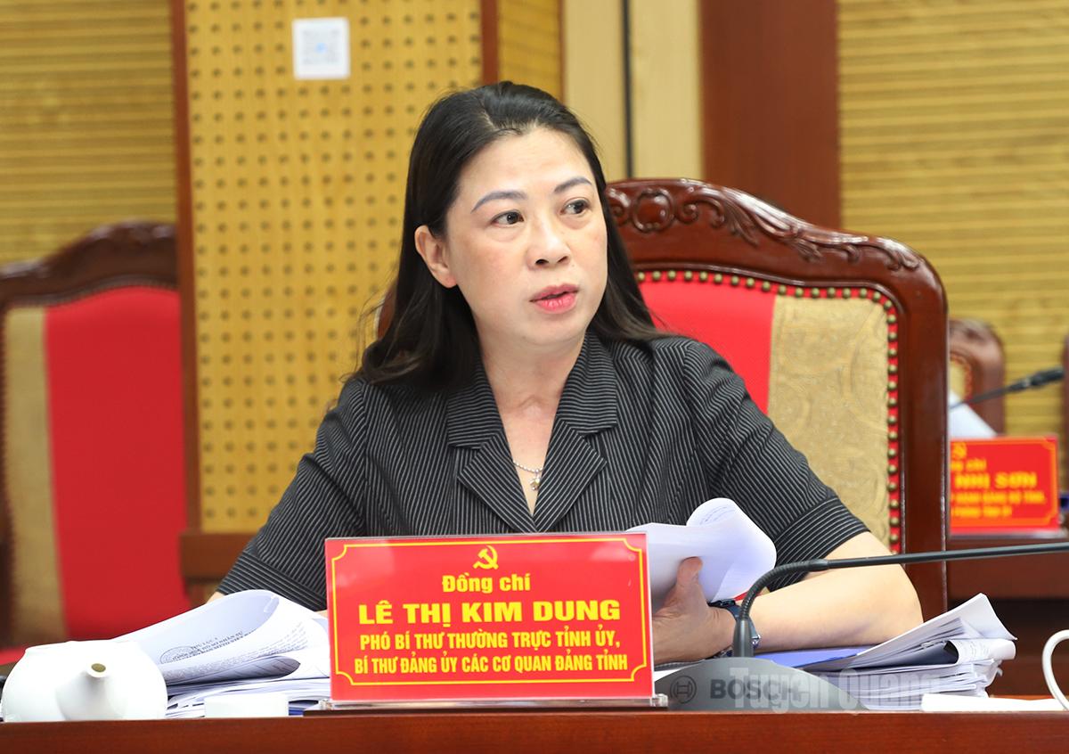 Phó Bí thư Thường trực Tỉnh ủy Lê Thị Kim Dung dự hội nghị.