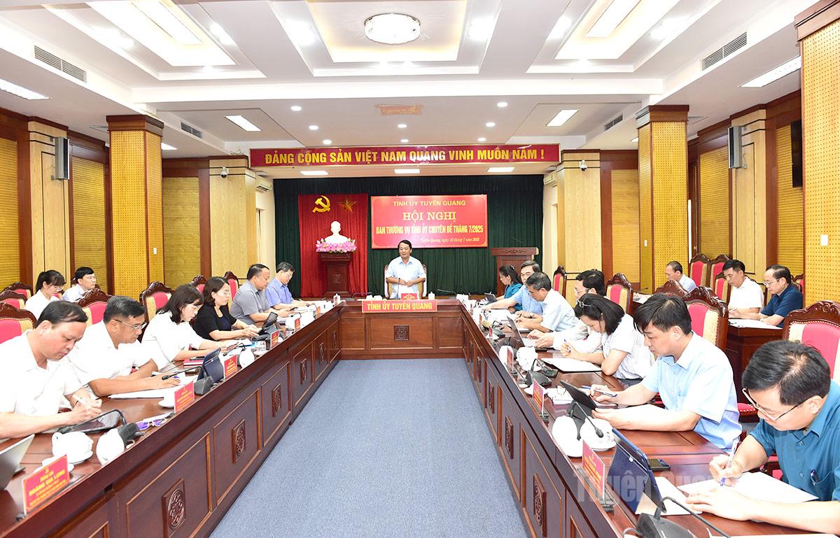 Hội nghị xem xét, cho ý kiến vào: Dự thảo Quy định chức năng, nhiệm vụ, quyền hạn, chế độ làm việc, quan hệ công tác của Ban Chỉ đạo phát triển khoa học, công nghệ, đổi mới sáng tạo và chuyển đổi số của tỉnh; Kế hoạch tuyên truyền đại hội Đảng bộ các cấp tiến tới Đại hội đại biểu Đảng bộ tỉnh, nhiệm kỳ 2025 - 2030 và Đại hội đại biểu toàn quốc lần thứ XIV của Đảng.