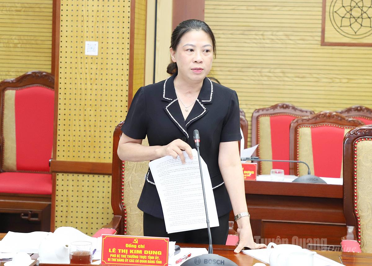 Phó Bí thư Thường trực Tỉnh ủy Lê Thị Kim Dung thảo luận tại hội nghị.