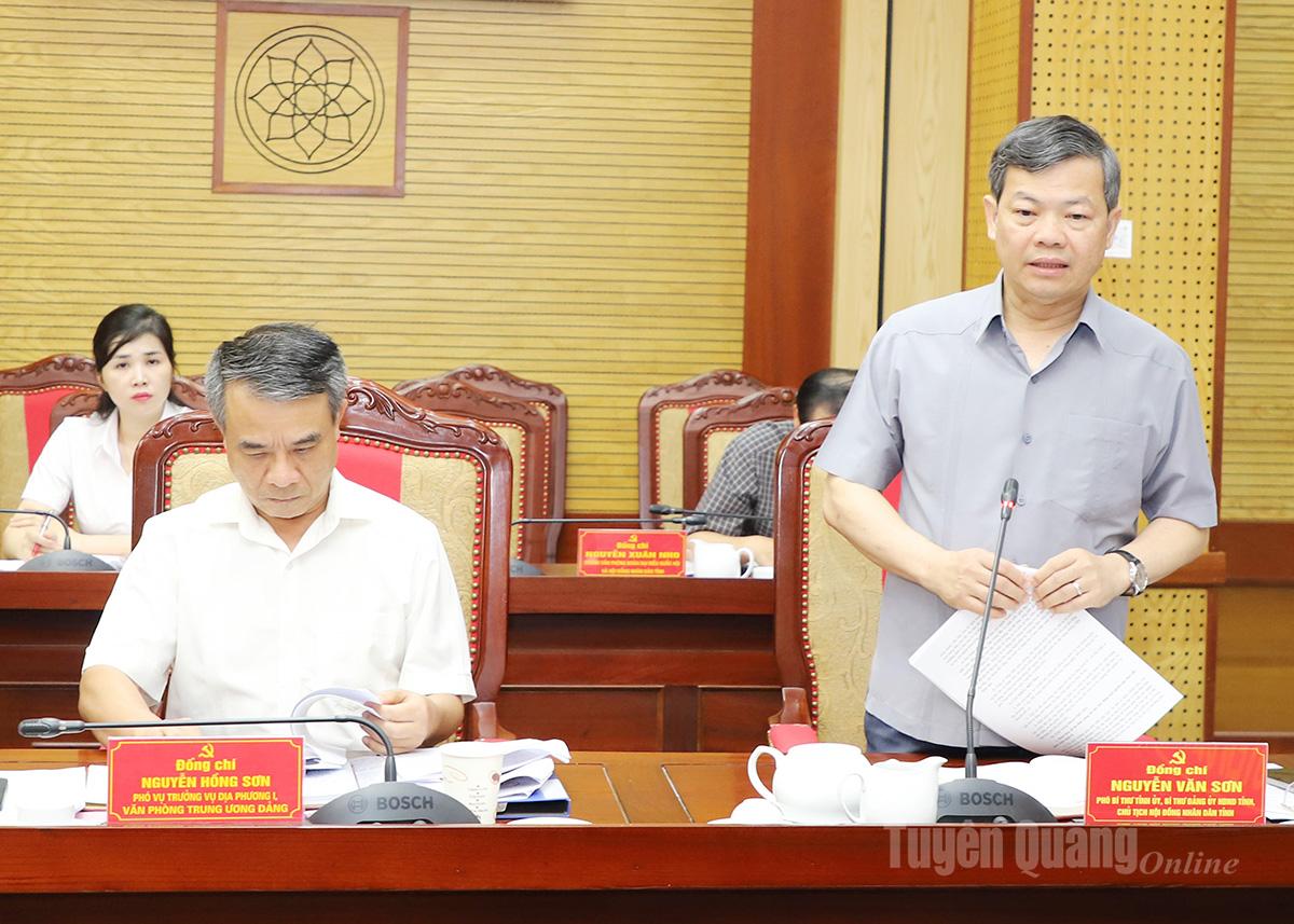Phó Bí thư Tỉnh ủy, Chủ tịch HĐND tỉnh Nguyễn Văn Sơn thảo luận tại hội nghị.