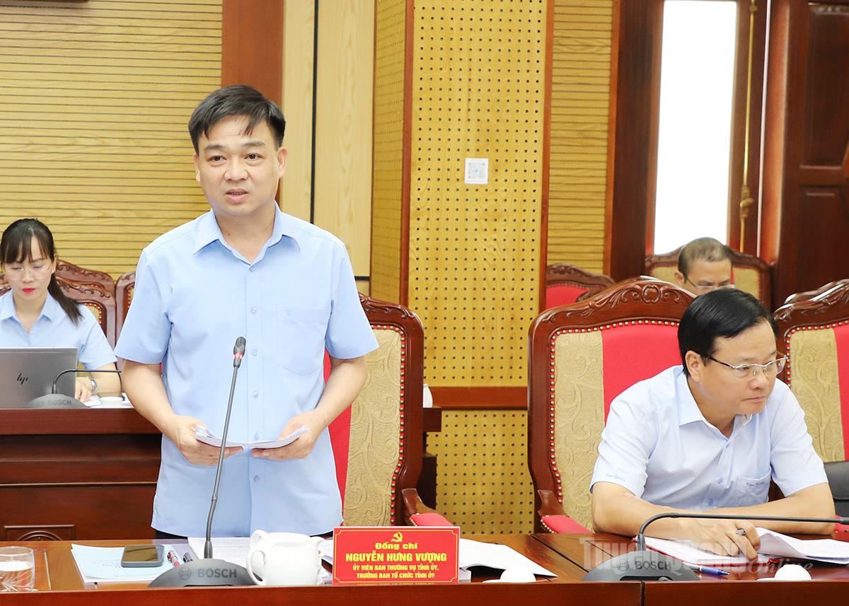 Trưởng Ban Tổ chức Tỉnh ủy Nguyễn Hưng Vượng trình bày báo cáo tại hội nghị.