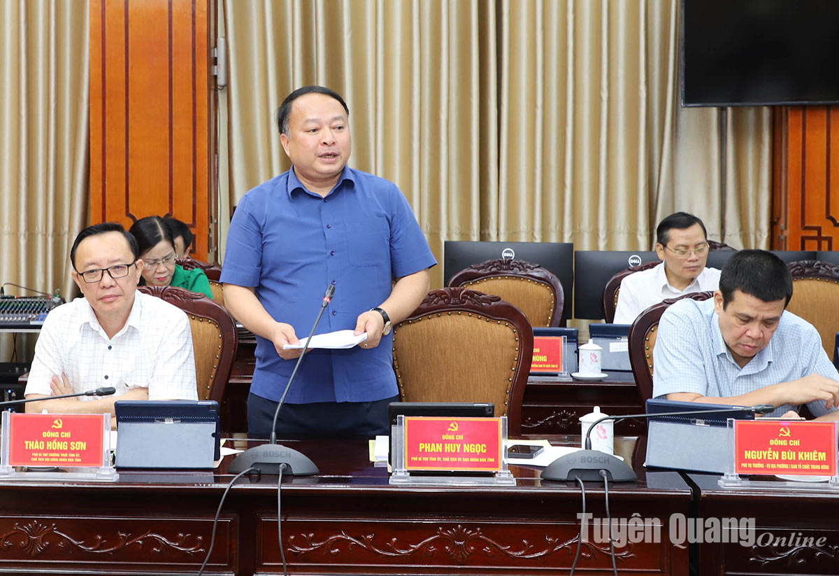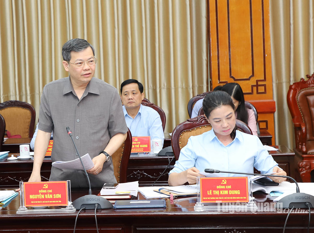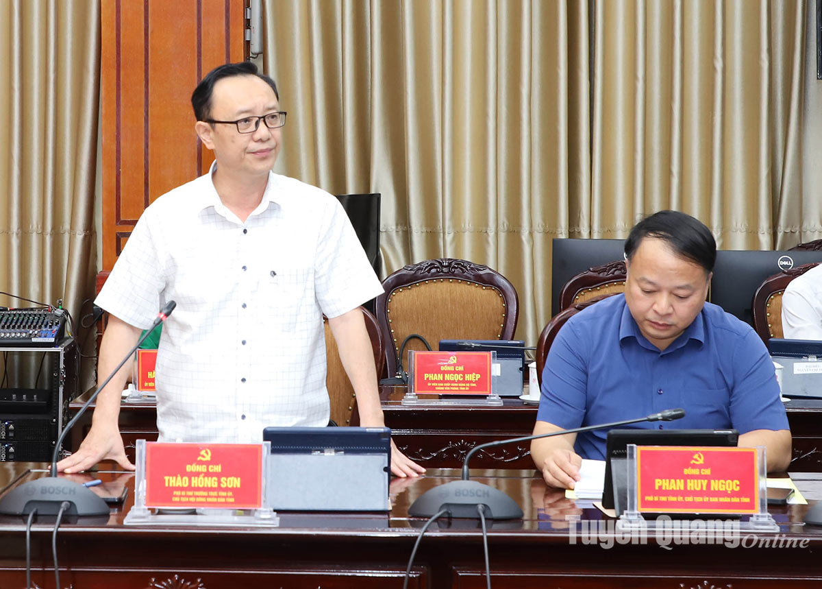 Phó Bí thư Tỉnh ủy, Chủ tịch UBND tỉnh Tuyên Quang Nguyễn Văn Sơn thảo luận tại hội nghị.