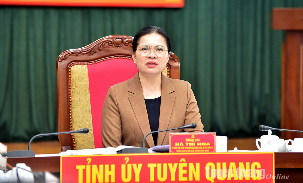 Đồng chí Bí thư Tỉnh ủy Hà Thị Nga đề nghị, các cơ quan đầu mối soạn thảo các dự thảo khẩn trương làm việc với các cơ quan liên quan của tỉnh Hà Giang để thống nhất, tạo sự đồng thuận cao giữa hai tỉnh, hoàn thiện các dự thảo đúng kế hoạch đề ra.