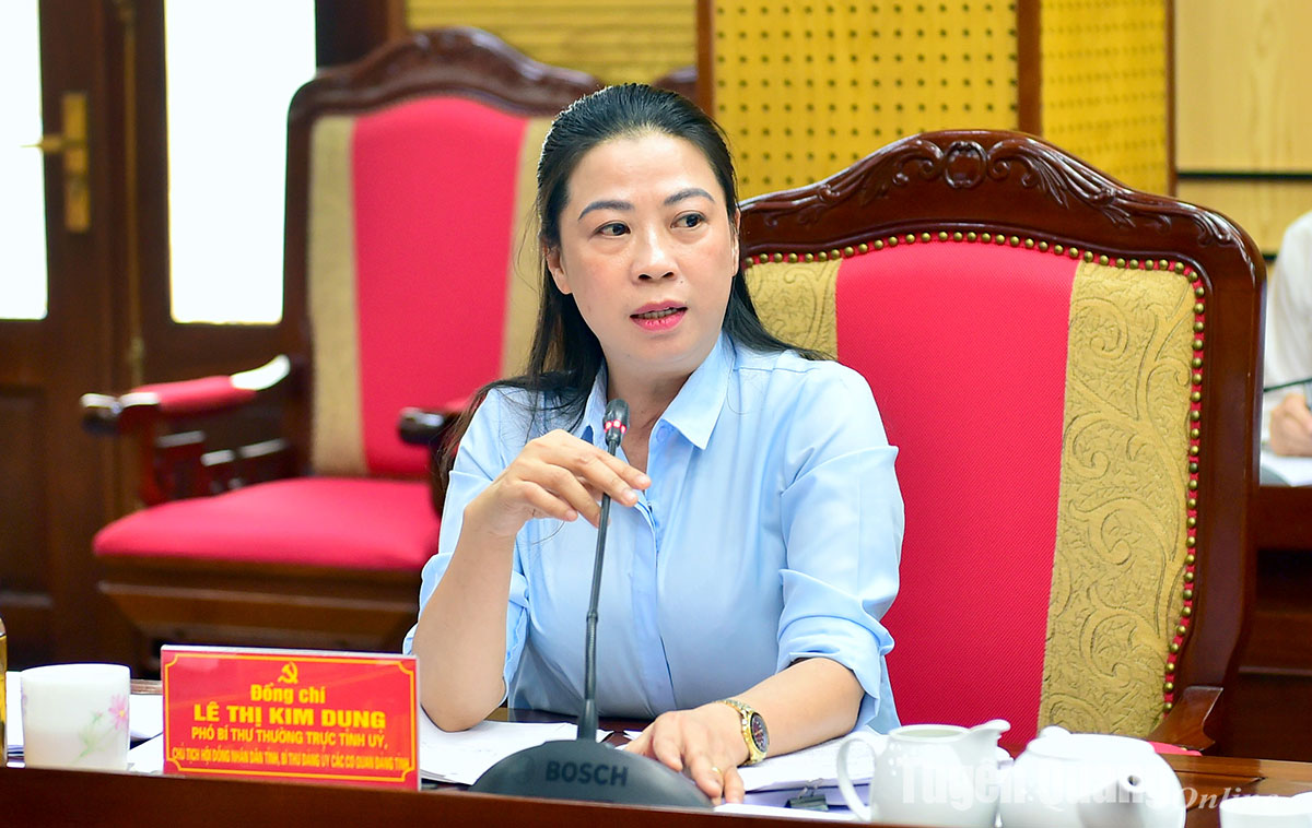 Đồng chí Phó Bí thư Thường trực Tỉnh ủy, Chủ tịch HĐND tỉnh Lê Thị Kim Dung phát biểu tại hội nghị. Ảnh: Thanh Phúc.