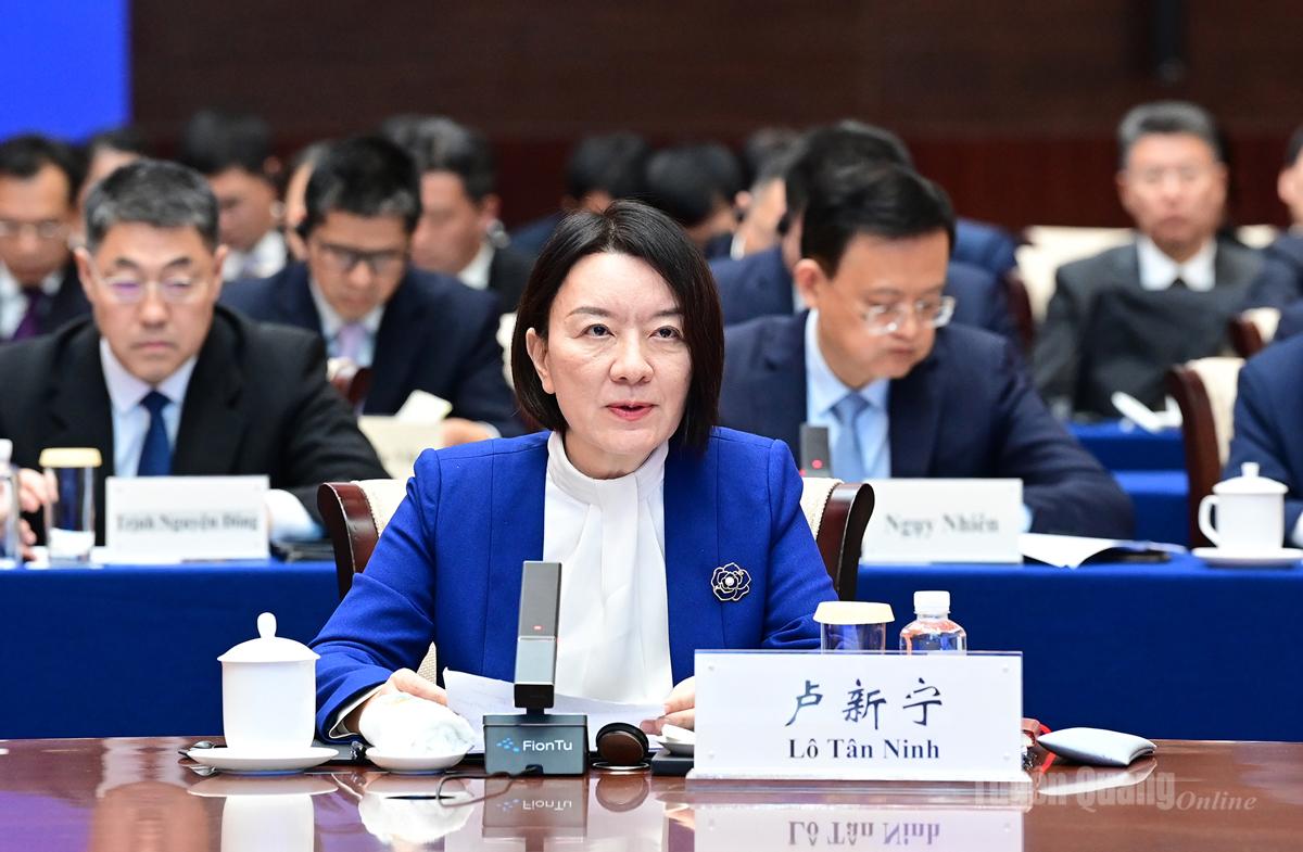 Đồng chí Lô Tân Ninh, Ủy viên Ban Thường vụ Khu ủy, Phó Chủ tịch Chính quyền nhân dân Khu tự trị dân tộc Choang Quảng Tây, Chủ tịch Ủy ban Công tác liên hợp phía Quảng Tây phát biểu tại hội nghị.