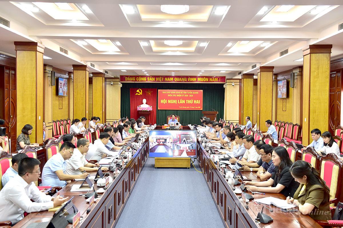 Hội nghị tập trung thảo luận vào Kế hoạch tổ chức đại hội Đảng bộ các cấp, nhiệm kỳ 2025-2030 và Đề án đại biểu dự Đại hội đại biểu Đảng bộ tỉnh Tuyên Quang lần thứ XVIII, nhiệm kỳ 2025-2030. Các đại biểu đều tán thành với Kế hoạch và Đề án.