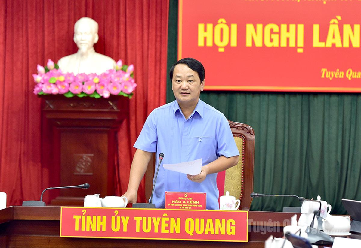 Đồng chí Hầu A Lềnh, Ủy viên BCH Trung ương Đảng, Bí thư Tỉnh ủy chủ trì hội nghị. Tham dự hội nghị có các đồng chí: Lê Thị Kim Dung, Phó Bí thư Thường trực Tỉnh ủy; Nguyễn Văn Sơn, Phó Bí thư Tỉnh ủy, Chủ tịch HĐND tỉnh; Phan Huy Ngọc, Phó Bí thư Tỉnh ủy, Chủ tịch UBND tỉnh; Ma Thế Hồng, Phó Bí thư Tỉnh ủy, Chủ tịch Ủy ban MTTQ tỉnh; các đồng chí Ủy viên Ban Thường vụ Tỉnh ủy, Ủy viên BCH Đảng bộ tỉnh; đại biểu Ban Nội chính Trung ương và Văn phòng Trung ương Đảng.